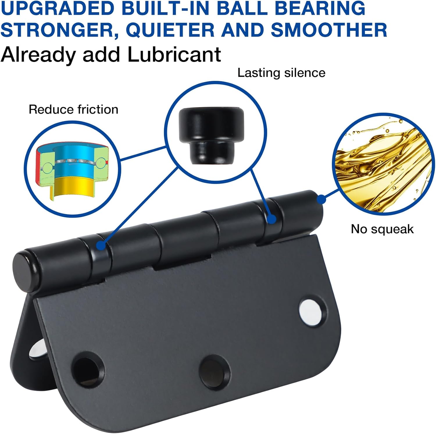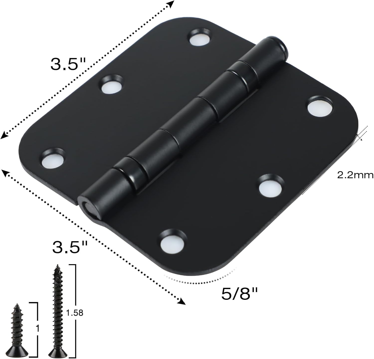 6 Pack No Squeak Matte Black Door Hinges 3.5 Inch 5/8"Radius Round Ball Bearing Interior 3-1/2"Flat Iron Bifold Residential Standard Bedroom Indoor for Doors 3 ½" Hardware House Home Decor Essentials