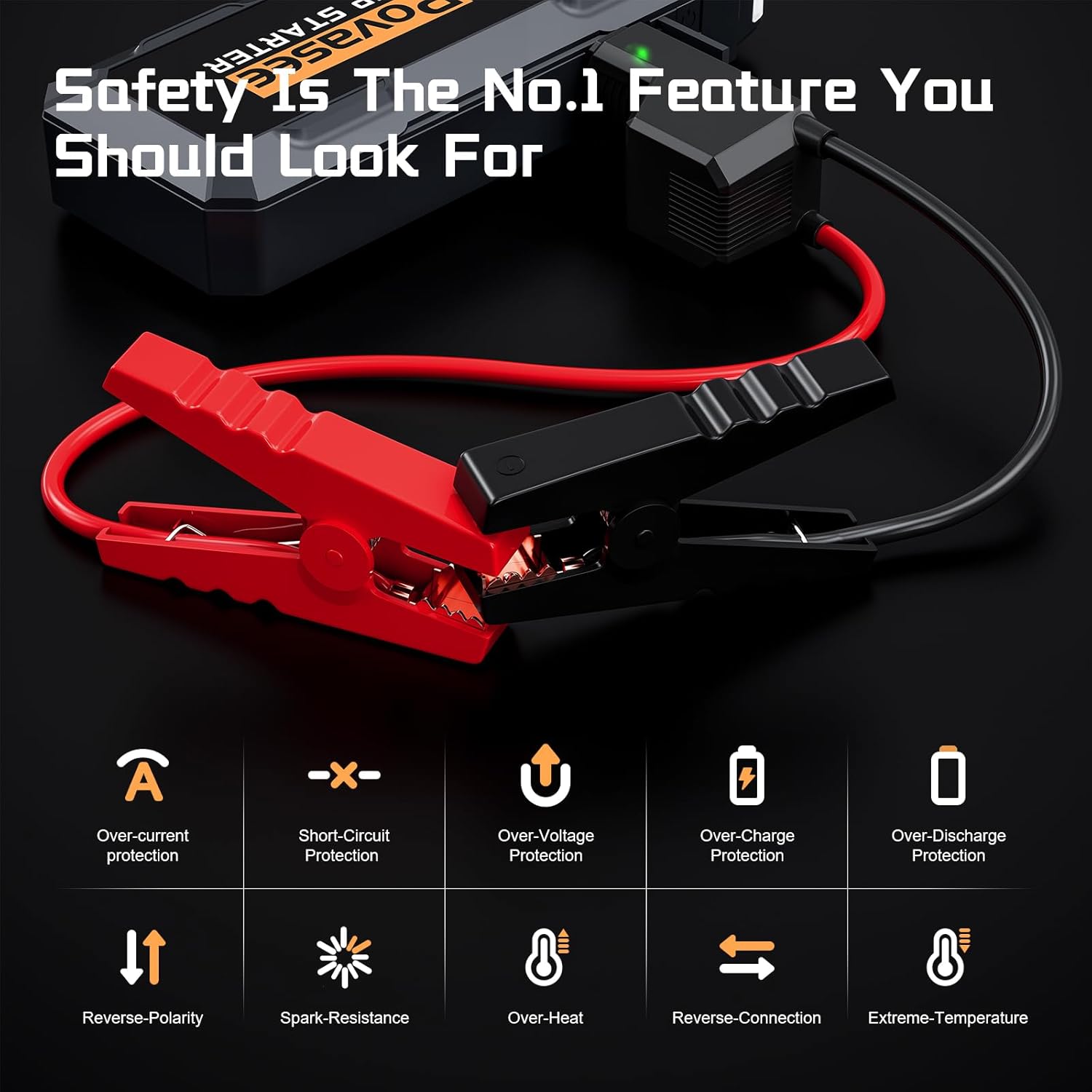 - Ultra-Safe Jump Starter: The Car Battery Jump Starter includes ten safety protections against reverse polarity, over-discharge, short circuits, overheating, and more. It ensures safe operation even in extreme weather conditions ranging from -22°F to 140°F.