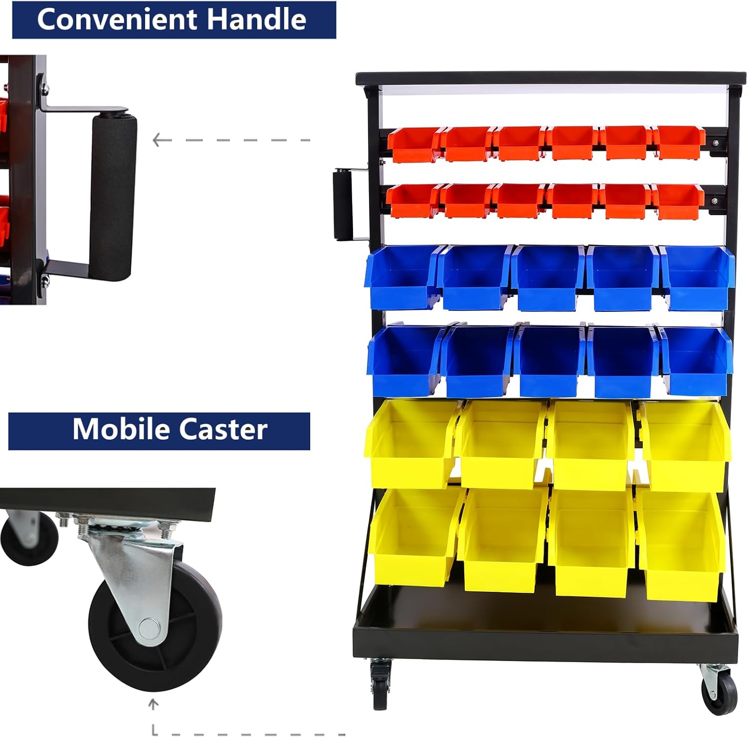 - Easy Access Label: Each bin in the parts bin rack system features a label area, enabling you to clearly identify and locate items. This saves you time to find small goods.