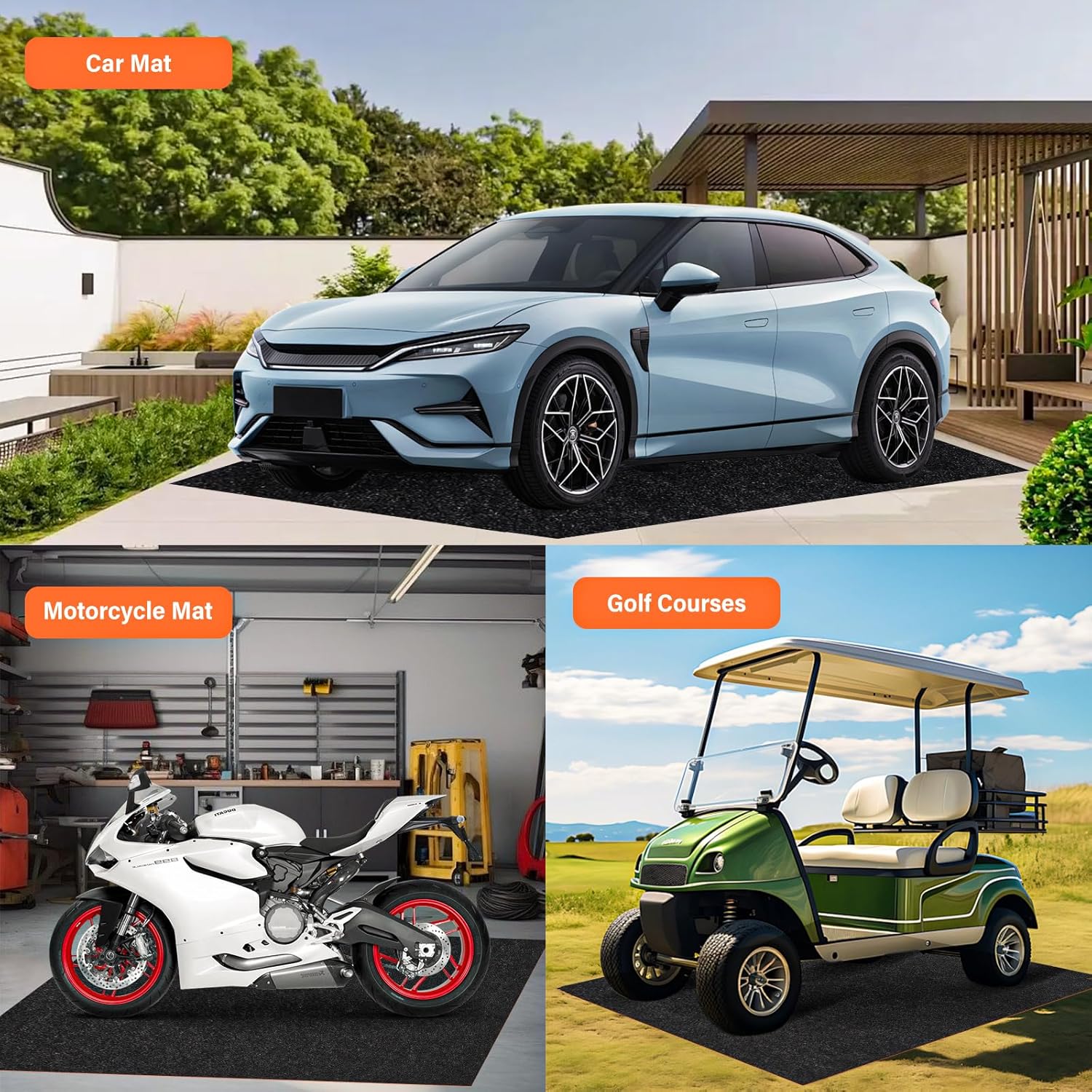 - MULTIPURPOSE: Garage mat's size is 8.5' x6.6'. Our rubber mats for floor is tear and abrasion resistant, durable and reusable;It is great for vehicle oil changes and repairs;Garage floor mats can also be used for car trunks, cabinets, gardening tools, harvesters, pet gear, etc
