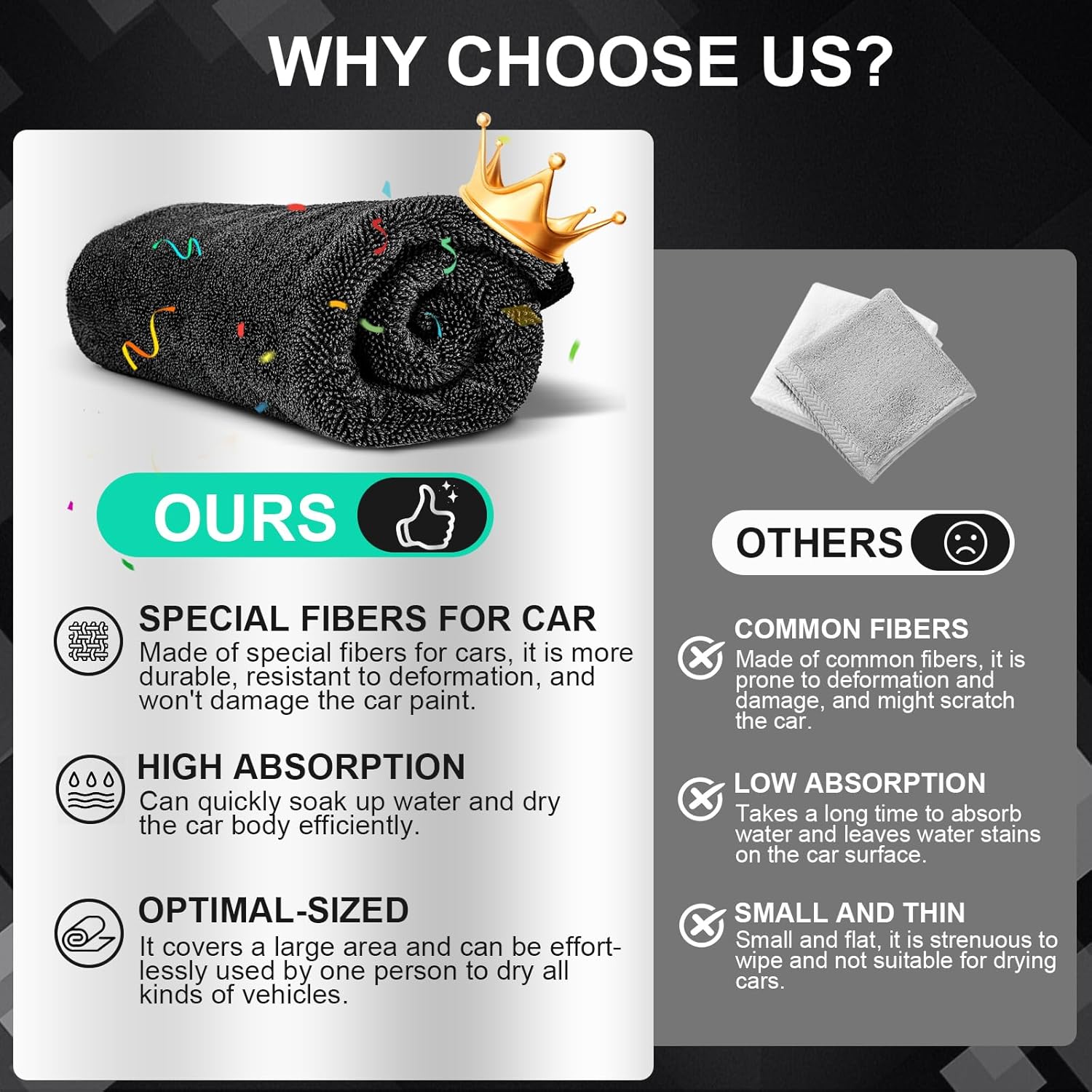 - 【EXCEPTIONAL ABSORBENCY & QUICK DRYING】 The TEAWOO Car Drying Towel, with advanced tech, absorbs up to 8 times its weight in water. It dries cars fast, whether after rain or a wash, saving you time and effort.