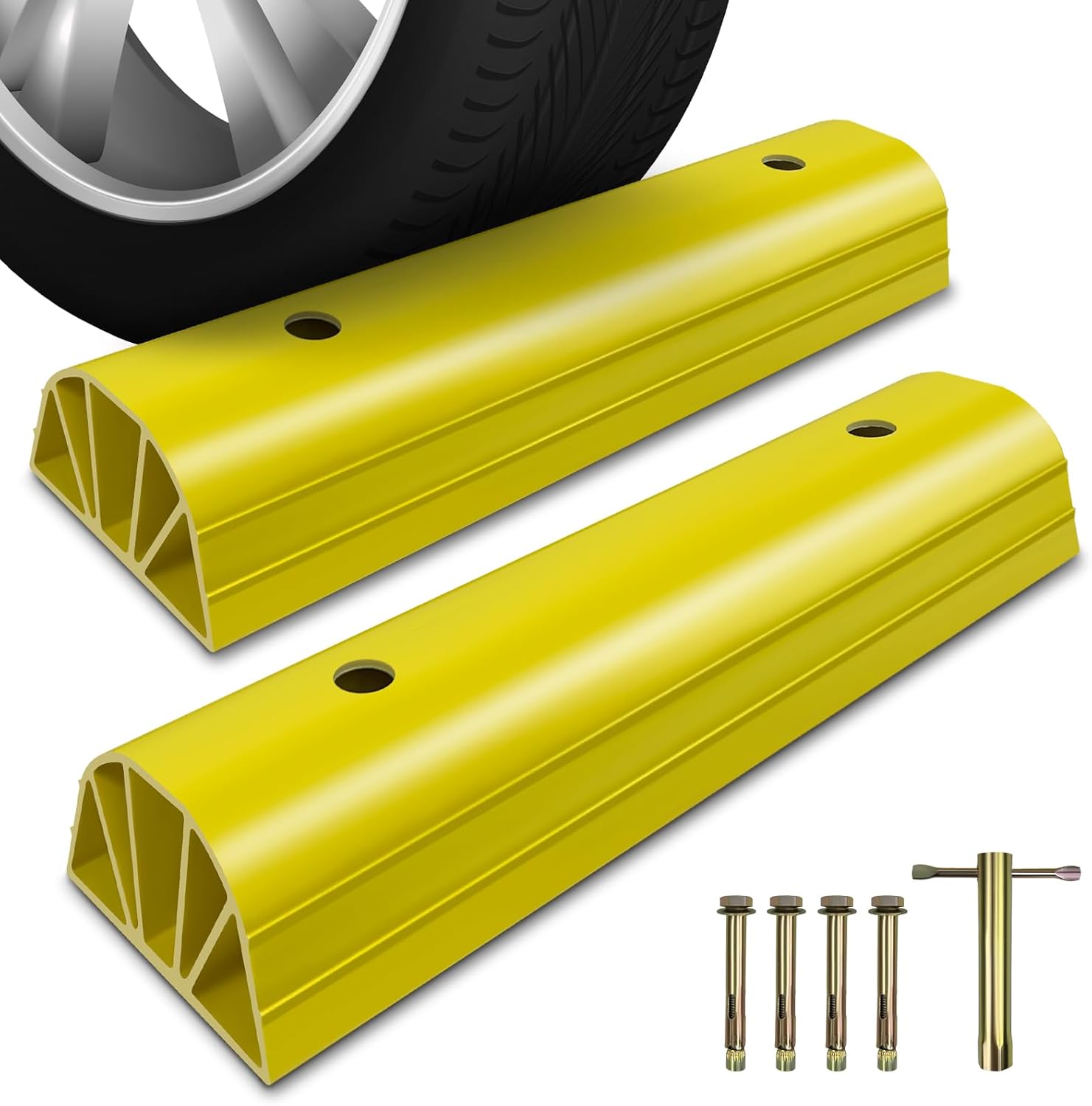- High Visibility: The striking yellow color creates a sharp contrast with the surroundings, making the parking block highly noticeable and easy for you to locate and park. Even in a dimly lit basement, you won't have to worry about tripping