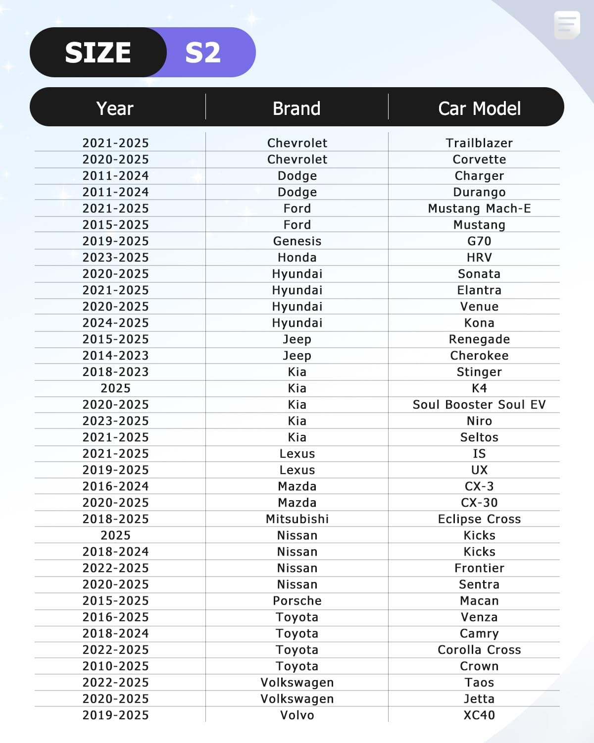 - : Vehicle Service Type Universal Fit