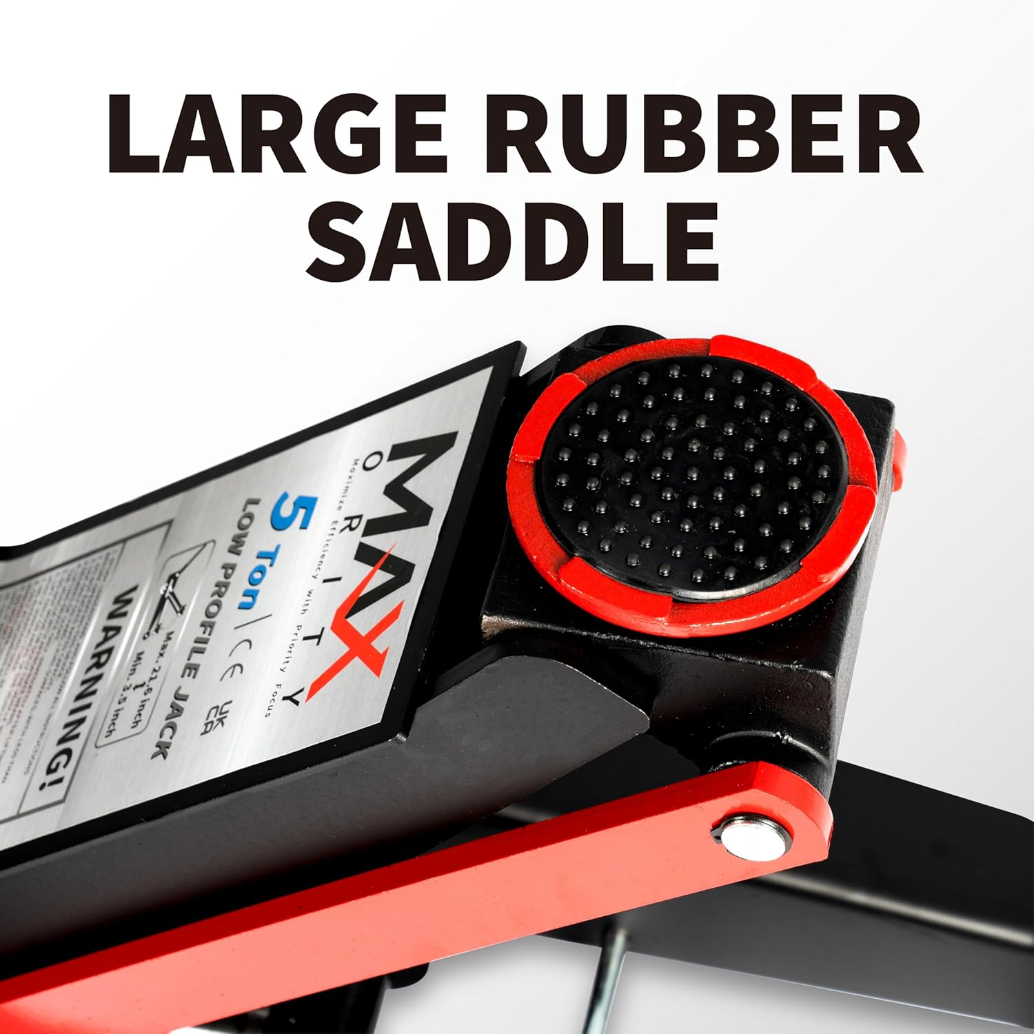 - Safety Features for Peace of Mind---This hydraulic floor jack prioritizes safety. Its safety valve prevents overloading, protecting both the jack and your vehicle. The anti-slip saddle ensures the vehicle stays securely in place, while the rubber padding prevents damage to the car's undercarriage.