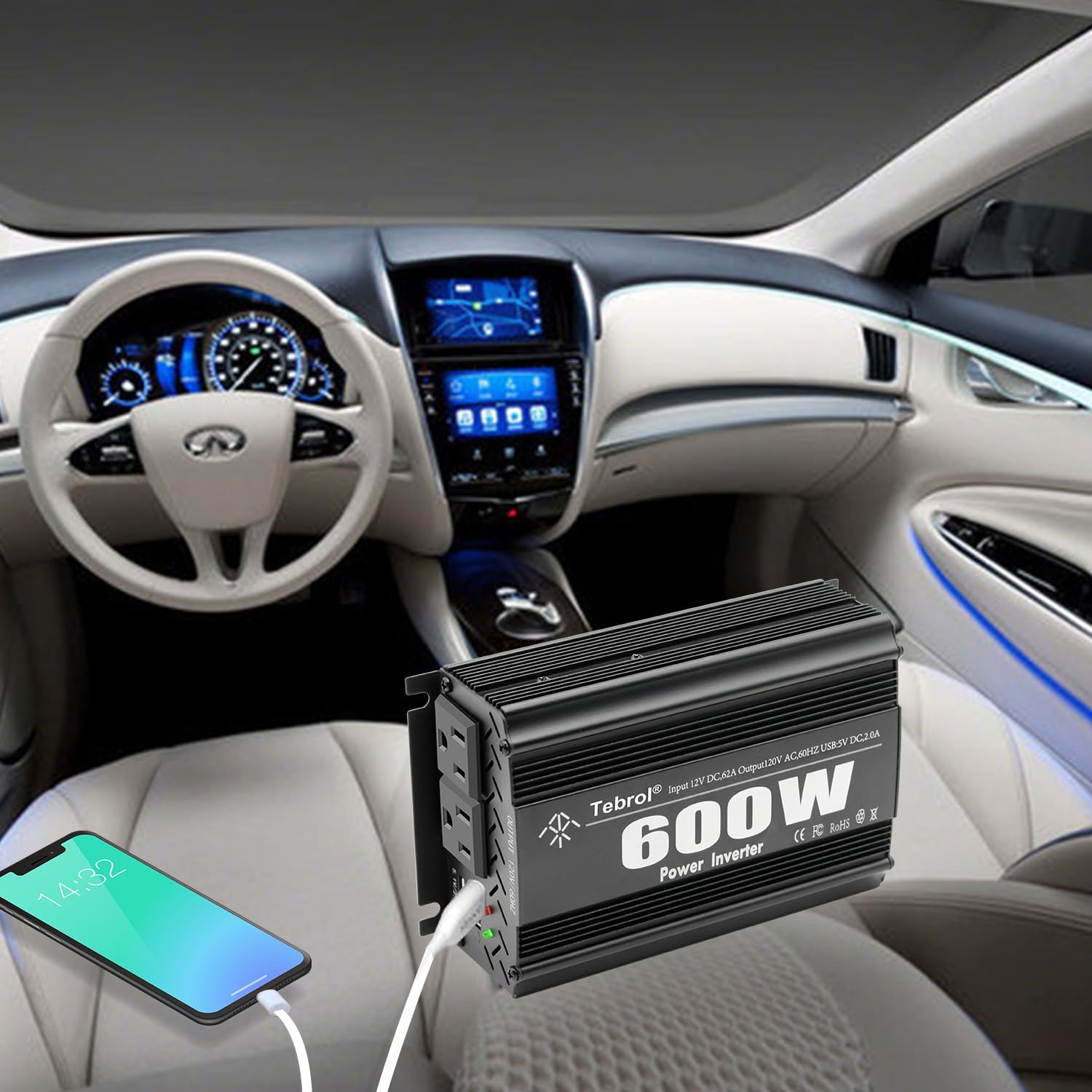 - {Good Quality}: Durable metal casing provides advanced protection against drops and collisions. The intelligent cooling fan system makes the vehicle power inverter very quiet during operation, with a dual protection mechanism of intelligent chip and built-in fuse.