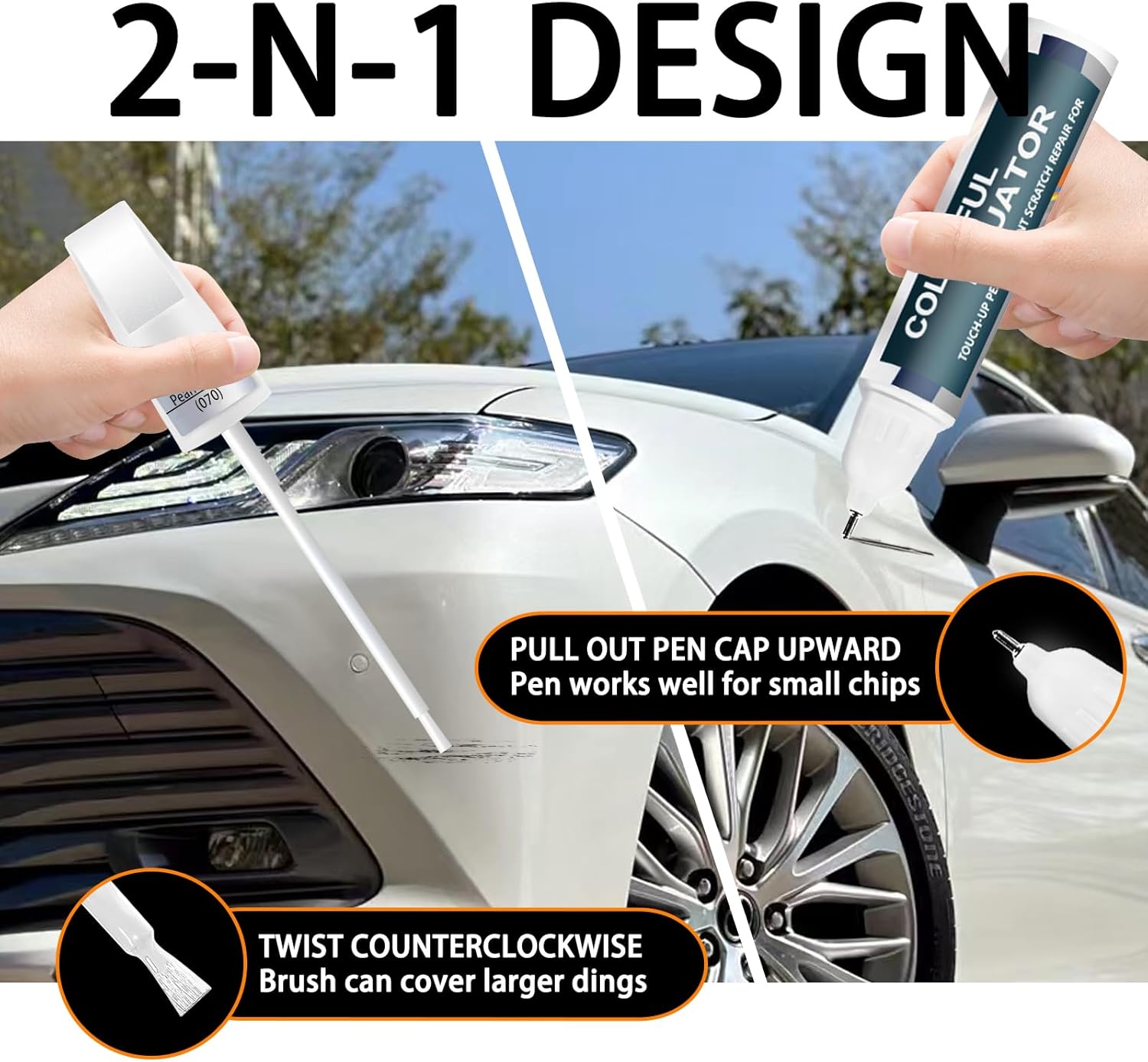 040 Super White/Ice Cap Touch Up Paint for Toyota, Car Paint Pen Scratch Repair Two-In-One Touch Up Paint, Premium Car Scratch Remover for Deep Scratches