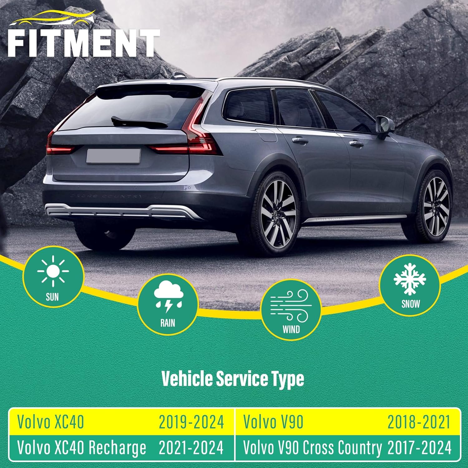 - [FITMENT4]: Replacement for 2017 2018 2019 2020 2021 2022 2023 2024 Volvo V 90 Cross Country 24inch + 20inch front with 14inch rear windshield wiper blades.
