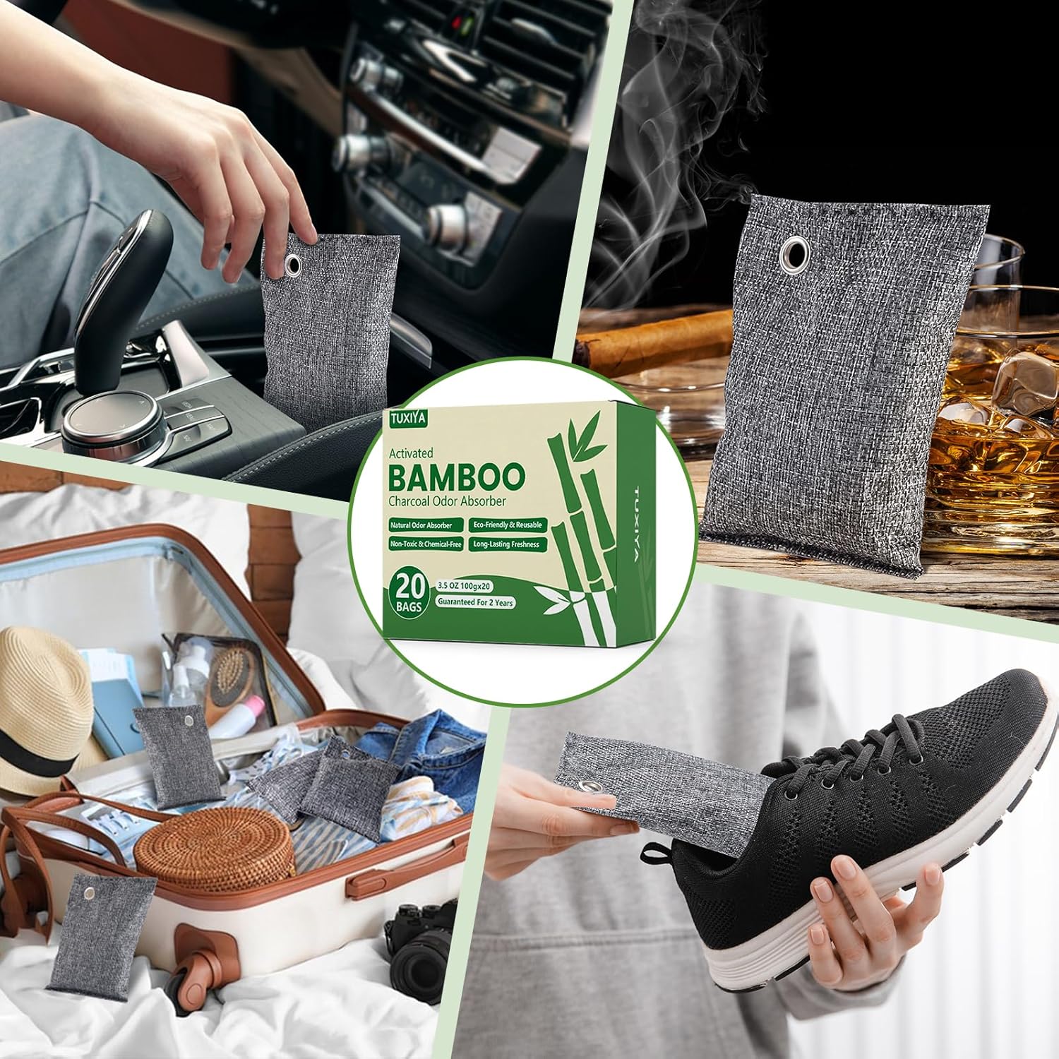 20Pack Activated Charcoal Odor Absorber, Odor Eliminator for Strong 0dor,Shoe Deodorizer,Bamboo Charcoal Air Purifying For in Car,Closet,Shoe, Basement,(100g /3.53oz Each)