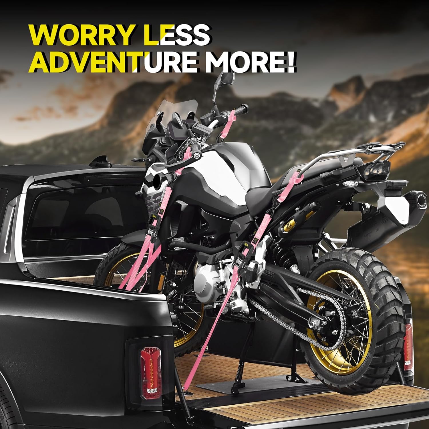 - Versatile Applications : Our tie-down straps are perfect for securing motorcycles, ATVs, UTVs, boats, kayaks, paddle boards, large appliances, and luggage for any transportation need. Whether you’re on the road or at home, these straps are your go-to solution!