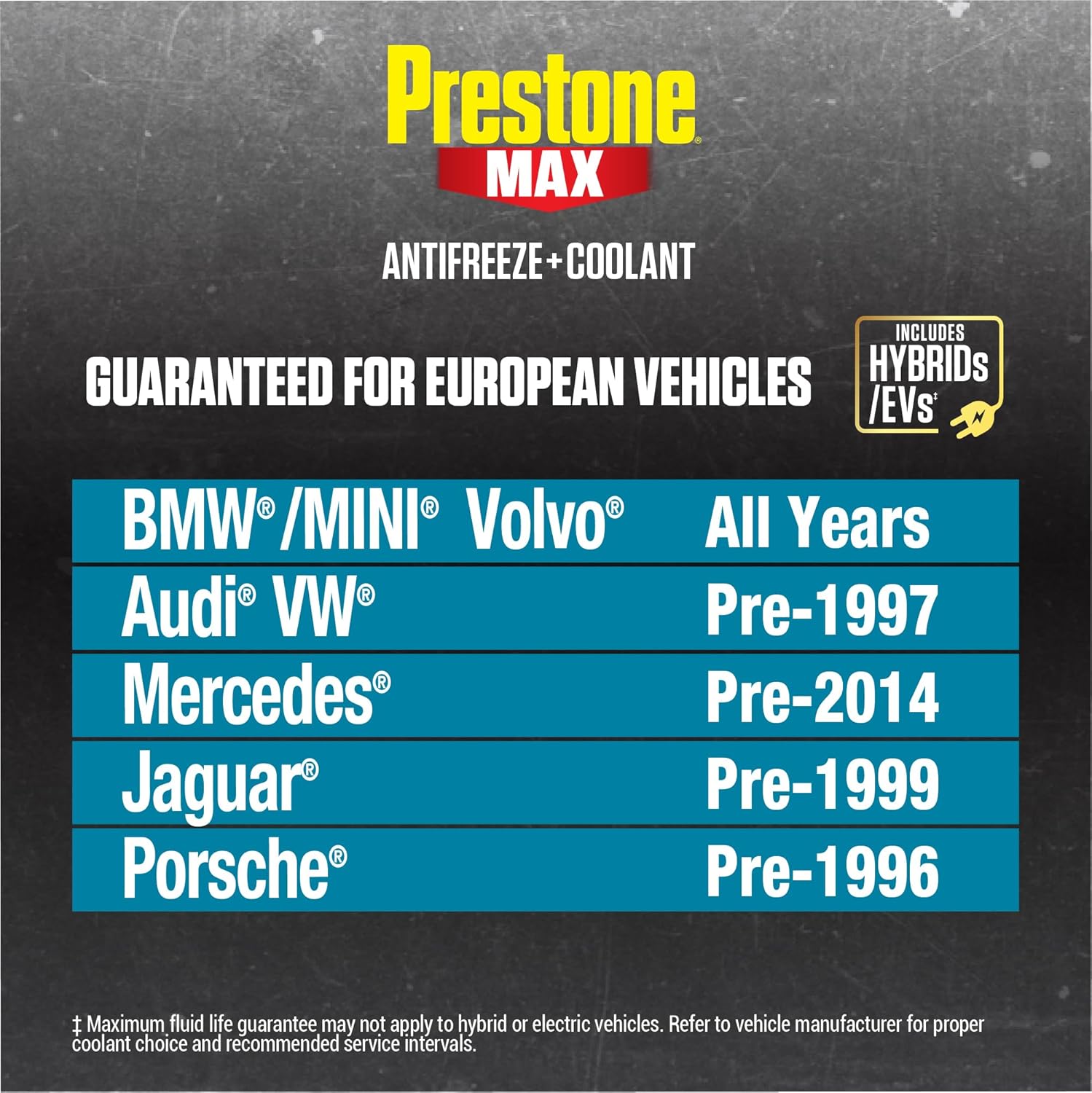 Prestone MAX Euro Blue 50/50 Antifreeze Automotive Coolant, Pack of One (Pack of 2)
