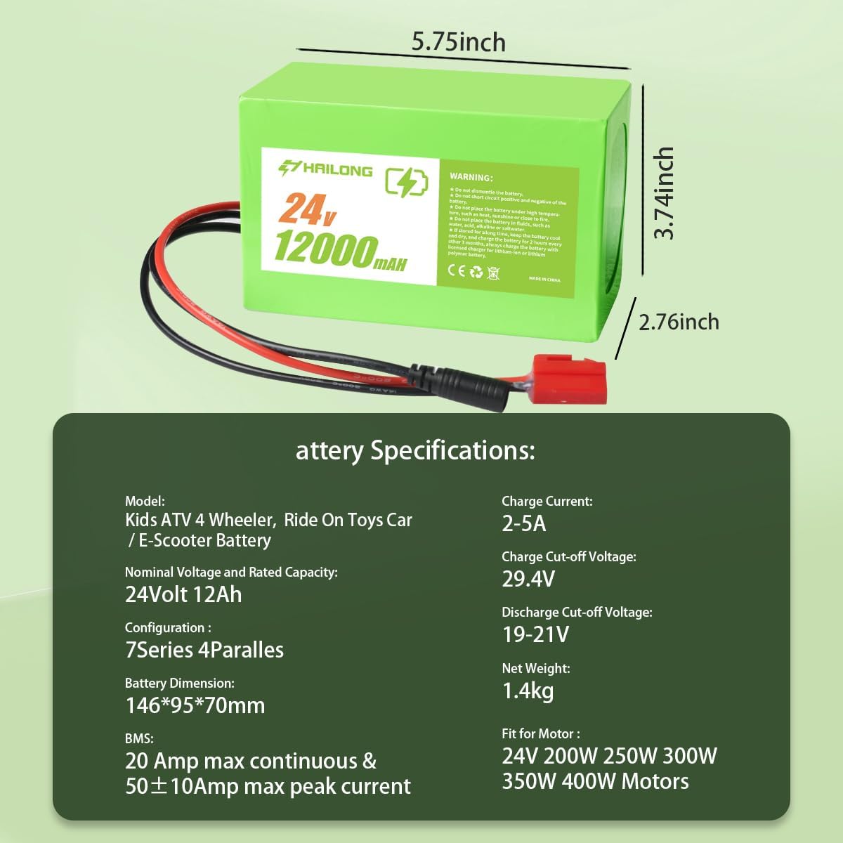 - โ**โก๏ธ Universal Compatibility** Perfect replacement for โ24V ride-on toys, electric UTVs, and kids ATVs. Compatible with systems using โ12FM7 battery 24V 12Ah 20hr specifications