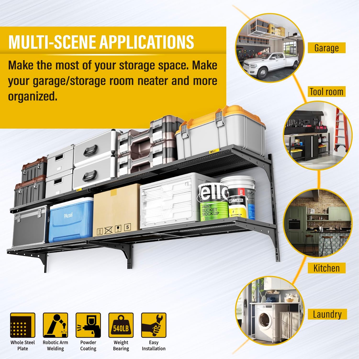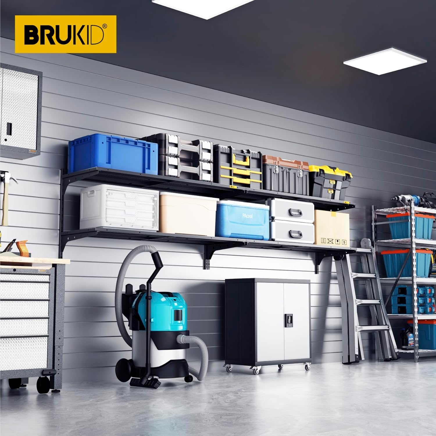 - 540lb Load Tested: Each panel of our Brukid heavy-duty wall shelf has undergone rigorous testing, with a 135-lb weight capacity per panel. This 4-pack (1.3x4ft) units offers a combined total capacity of 540 lbs, making it ideal for heavy-duty storage in garages, workshops, or commercial spaces.