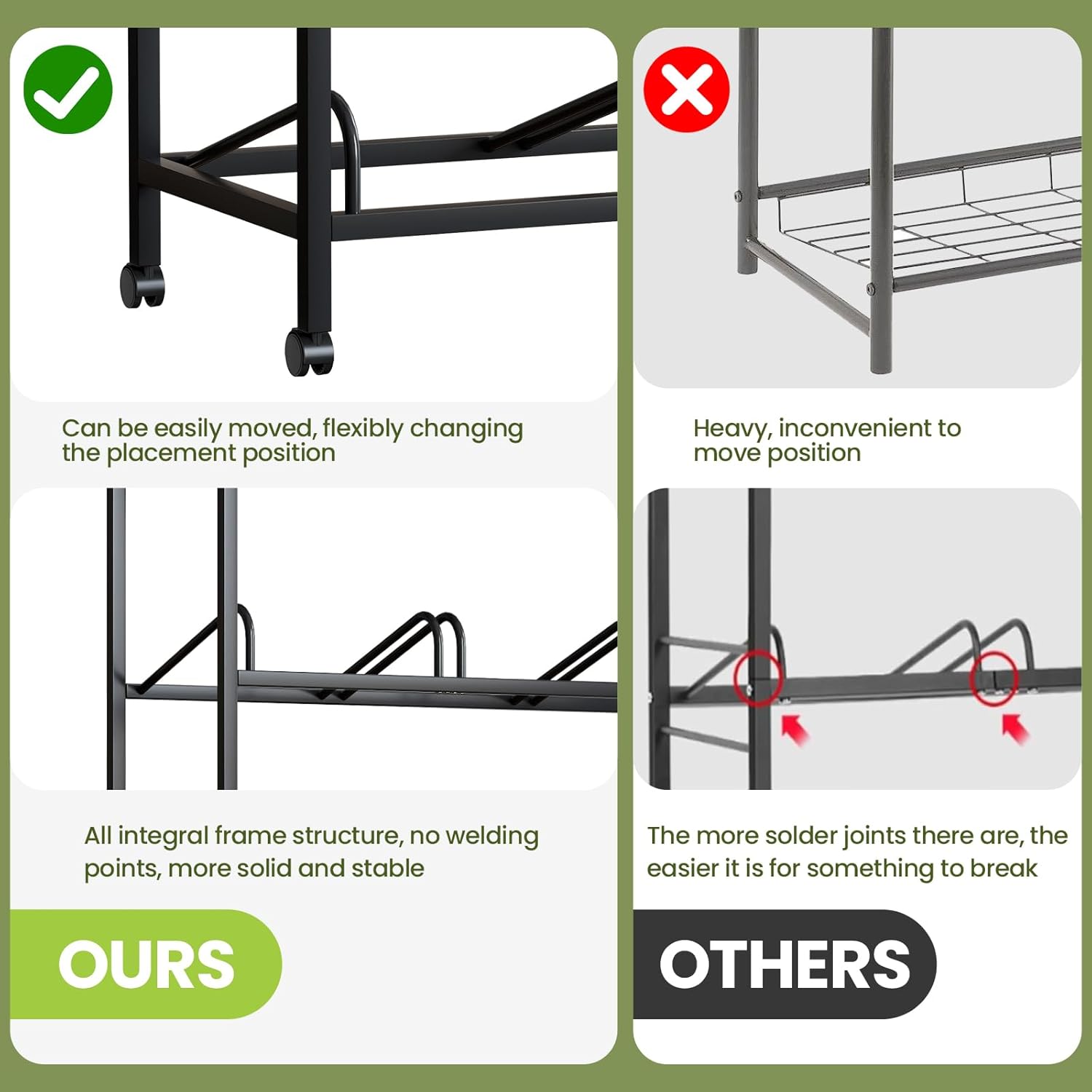 - 【Easy to Assemble】Unlike other bottle racks with more components, our water jug holder boasts easy assembly with fewer parts and a stable structure. 2 brake wheels, 2 swivel wheels. You can have it fully assembled in under 10 minutes.