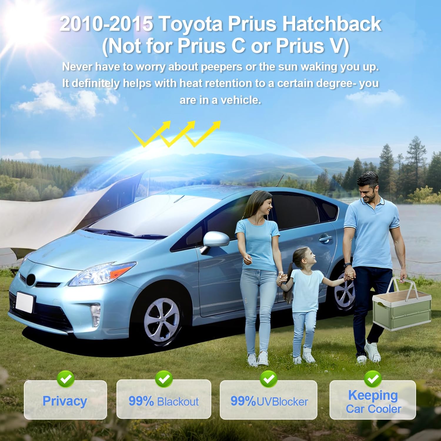 - Designed specifically:SHINELINERS full window sunshade is specially designed for Toyota Prius Hatchback 2010 2011 2012 2013 2014 2015.Provide your car with comprehensive UV and infrared protection, not only keeping the interior cool in hot weather but also extending the lifespan of the car's interior