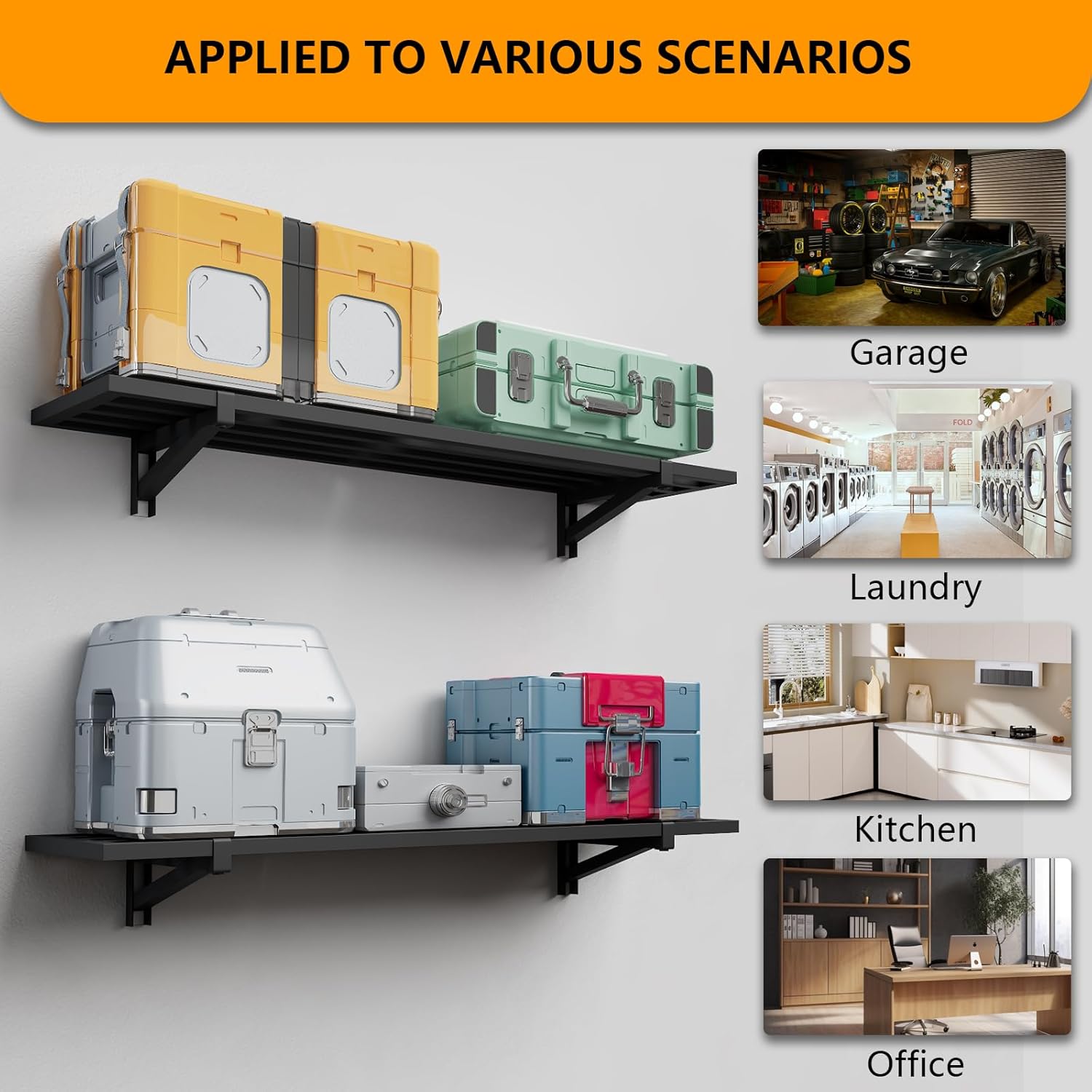 - Premium Craftsmanship: This garage wall shelving is crafted from a single steel sheet, precision-stamped and folded for strength. Unique high-density hole design enhances functionality while delivering a sleek, modern aesthetic.