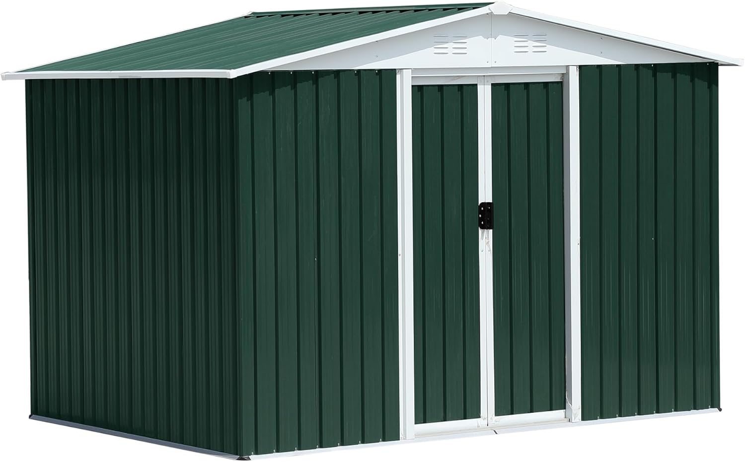 - š”šš„š„-š°šššš”šš« šššØš«šš š šš”šš: Our metal shed 6x8 features smooth, lockable sliding doors with handles for easy opening and closing. It serves not only as a safe space for storing garden tools but also as a warm pet house. The sloped roof of the storage building effectively prevents leaks and snow accumulation, while the four integrated punched vents improve airflow, helping to keep your items dry