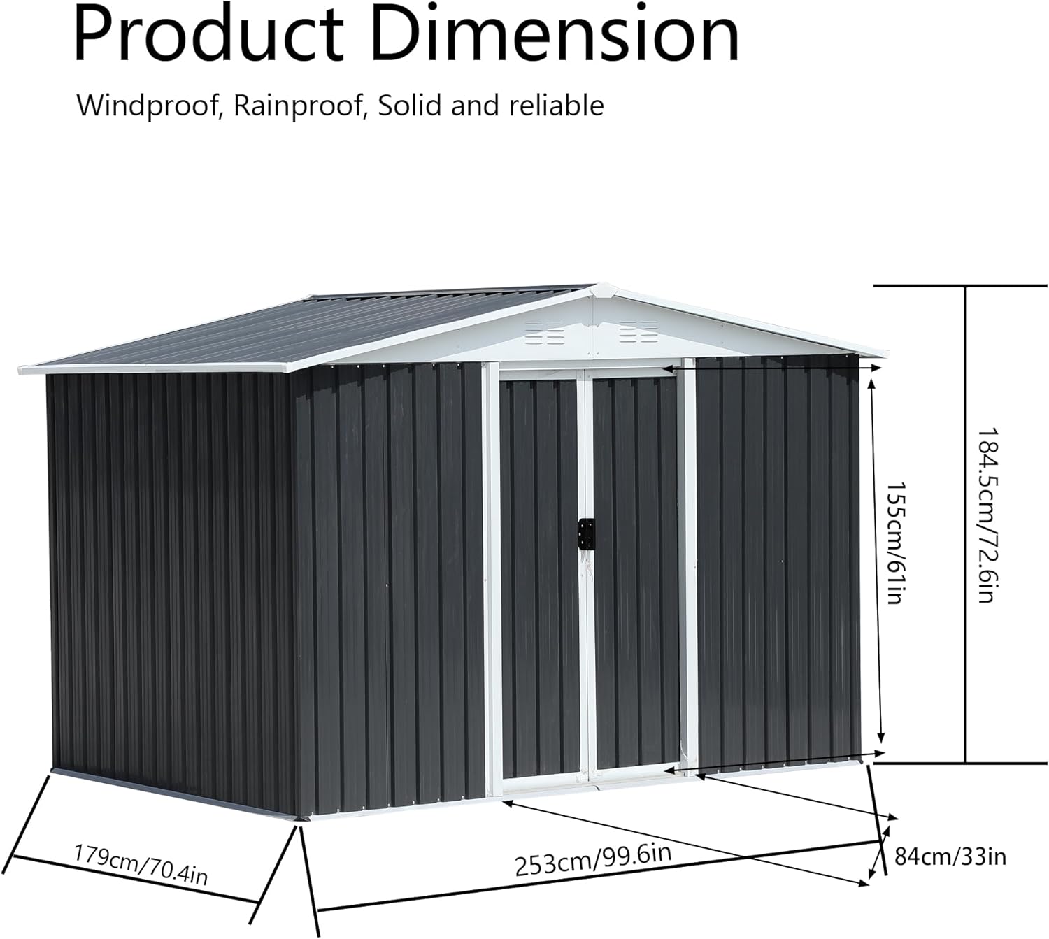 - š”ššš¢š§ššØš«ššš ššš«š®ššš®š«š: There's nothing more frustrating for gardeners than a collapsed garden tool shed. Luckily, this sheds & outdoor storage 8x6 features upgraded reinforced windproof ground stakes and aluminum alloy frame for enhanced stability. The thick galvanized steel panels are coated with high-quality paint, making them rust, UV, and moisture-resistant, ensuring durability and the ability to withstand harsh weather for at least 10 years