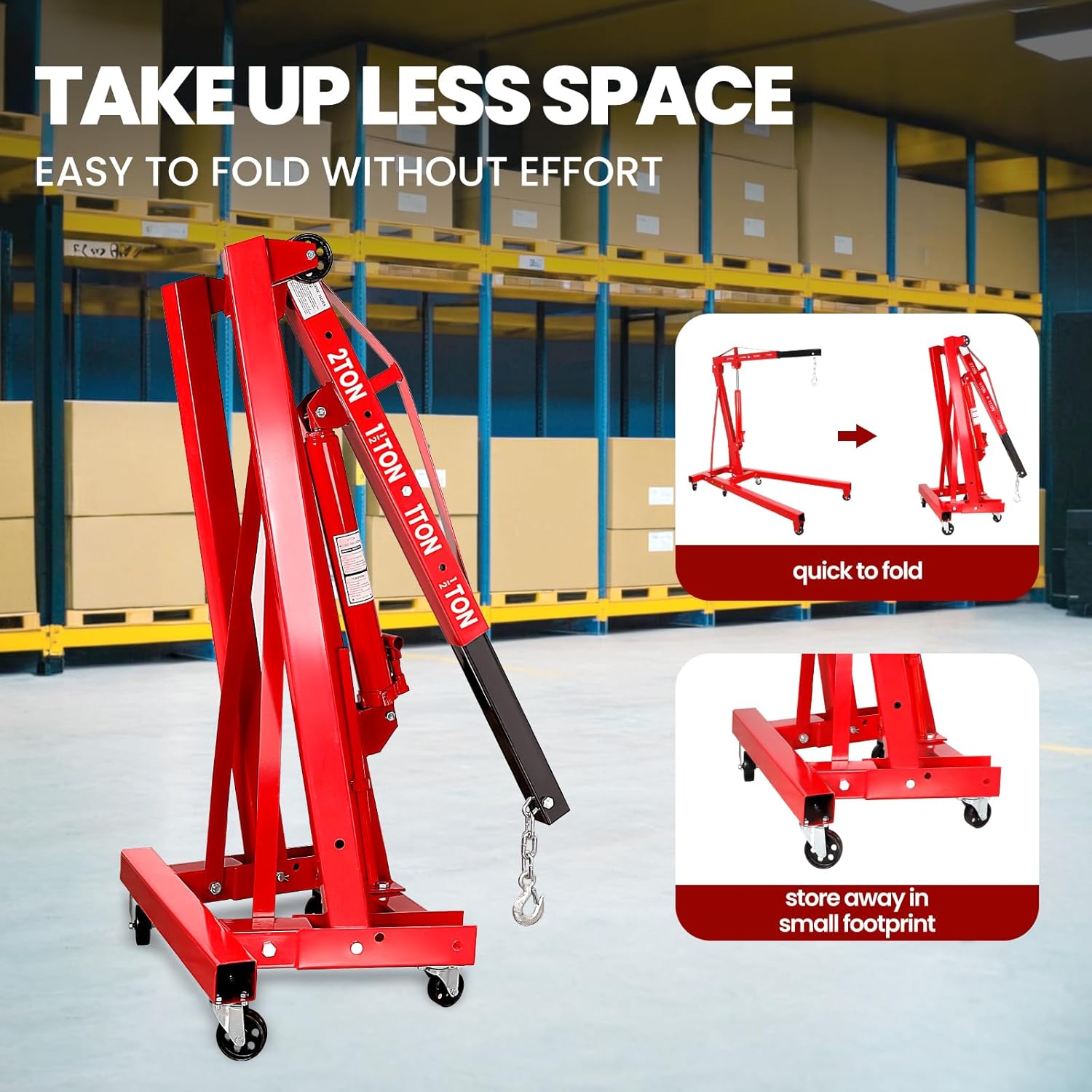 - 🧲 【Space-Saving Foldable Design】: Collapsible frame transforms this Cherry Picker into a compact storage solution without sacrificing 2.5-ton(5500lbs) lifting power. Perfect for workshops with limited space.