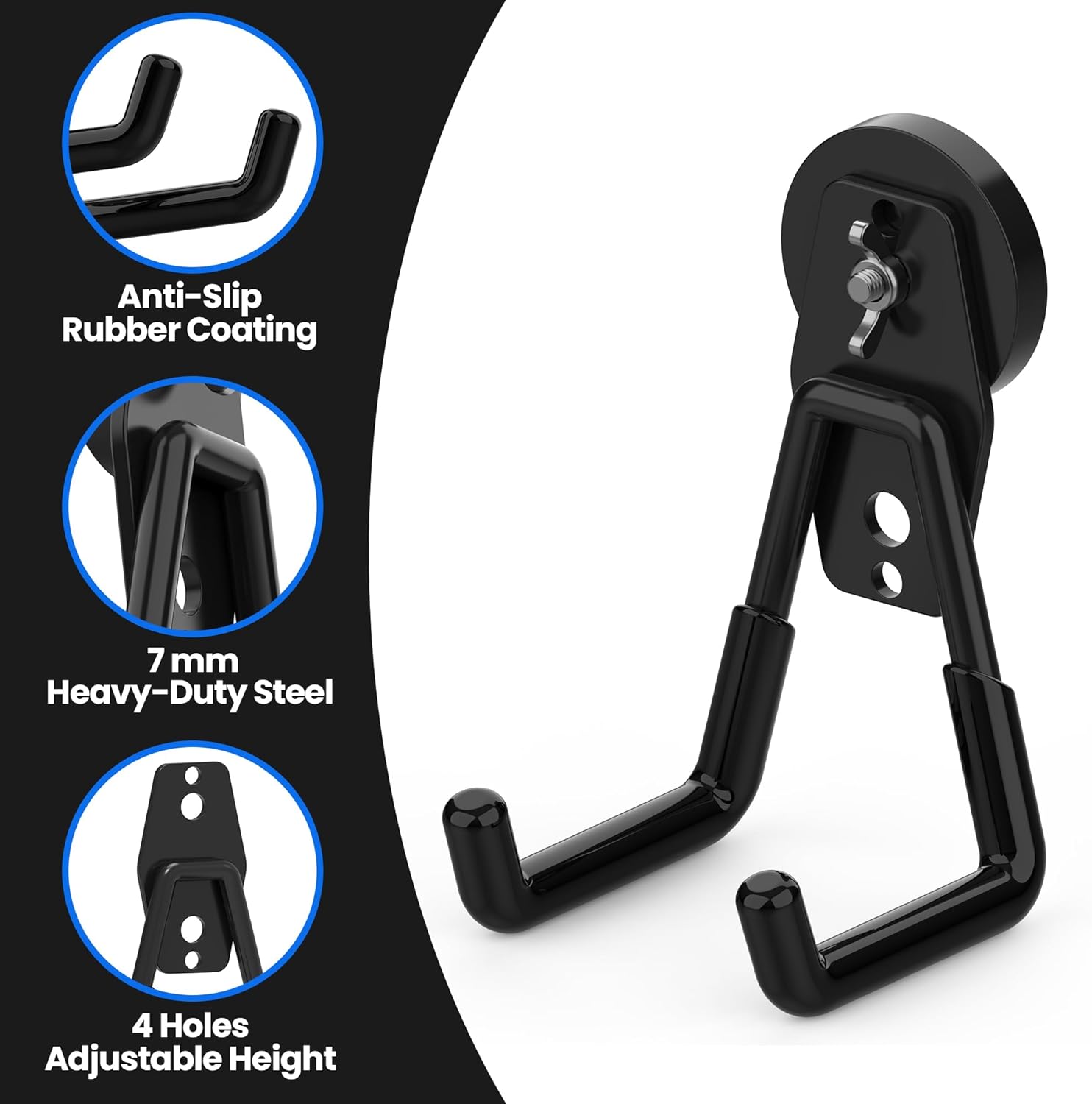 - 【Super Strong Magnetism & Sturdy Structure】 Each magnet hooks heavy duty features magnet base embedded with 6 industrial-grade rare earth neodymium magnets, ensuring powerful adsorption and reliable load-bearing. Made of thick, high-quality steel, these magnetic tool hooks provide a stable hold for heavy tools like power drills, hammer, air tools, shovels, rakes, ladders, toolboxes, toolchests, wrenches, tool carts, as well as daily items such as brooms, mops, dustpans, hoses, gym bags, backpacks, kitchen utensils, dog leashes, wires, straps, ropes, extension cords, clothes, and wreaths