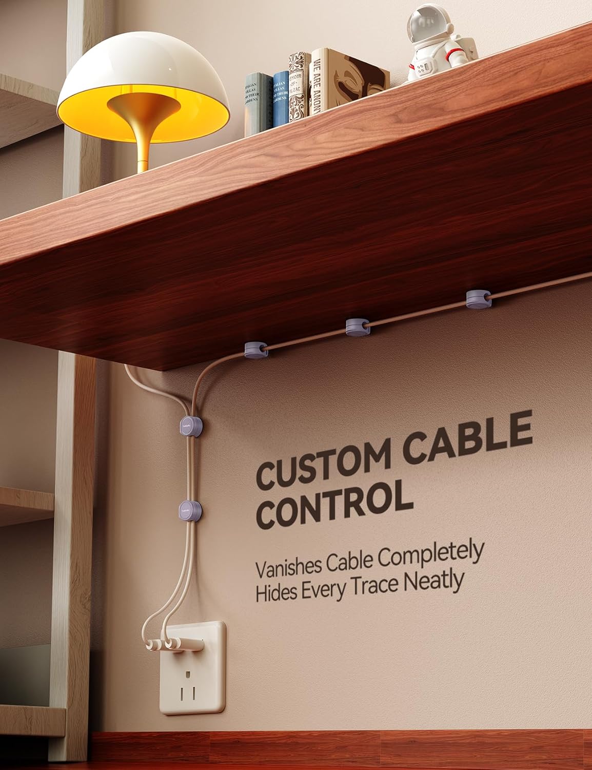 - Special Designed Silicone Magnetic Cable Clips: One-piece silicone molding design FLYLEAD cord organizer with better moldability, the soft silicone material makes this cable organizer more malleable and skin-friendly. After over 10,000 times of tensile tests, the flexible upper and lower joints never broke. With the strongest N55 magnets, covers can be tightly adherent to each other, soft silicone-made FLYLEAD cord holder could embrace cables, which won't squeeze or damage the cables