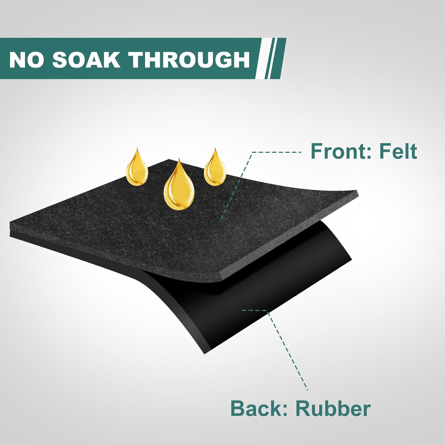 - Fast absorbing and Long-Lasting Oil Mat: The top layer is made of thick polyester fabric, which is highly absorbent and capable of containing any oil or liquid spill. The bottom features a waterproof and non-slip rubber backing to prevent the mat from moving and ensure safer footing.