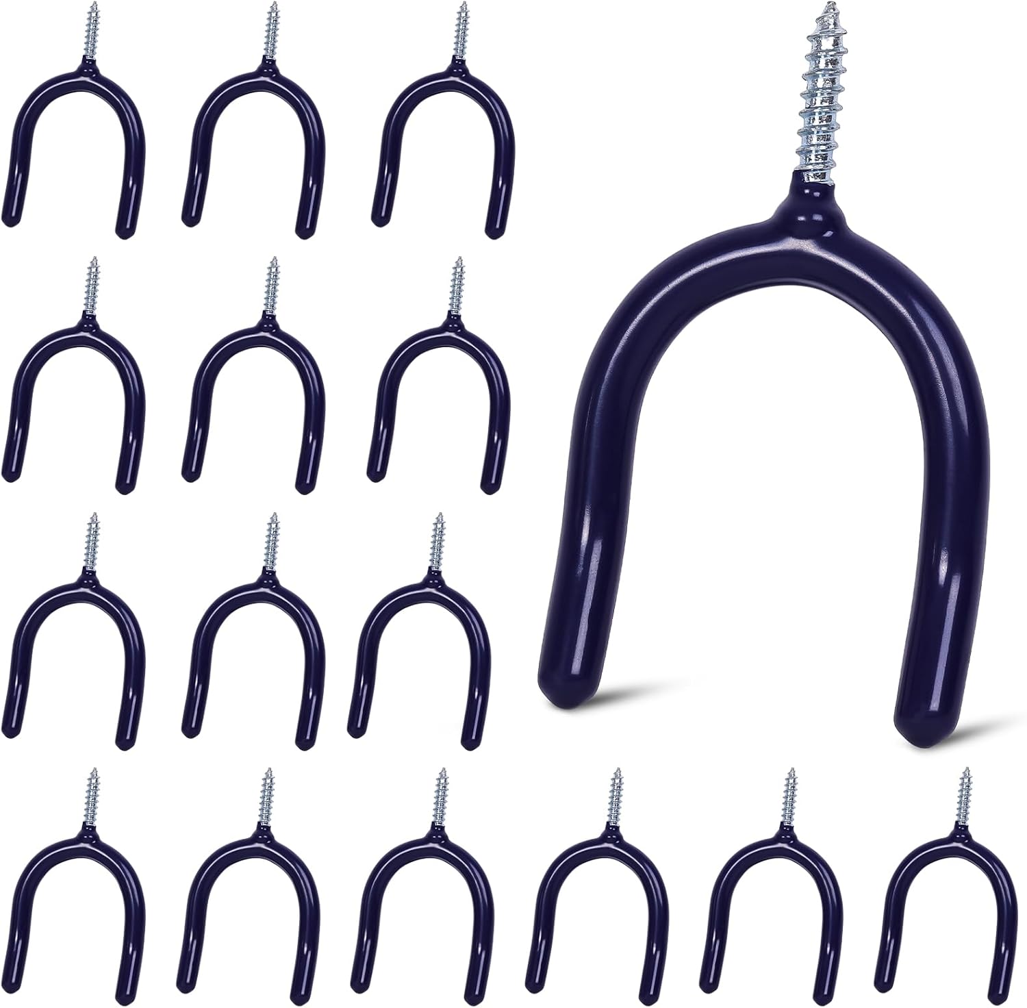 16 Pack Garage Storage System Steel U Hooks with Anti-Slip Coating Home Improvement and Organization Screw in Hooks Easy Wall Mounting Heavy Duty Bike and Ladder (Blue, 16 Pack)