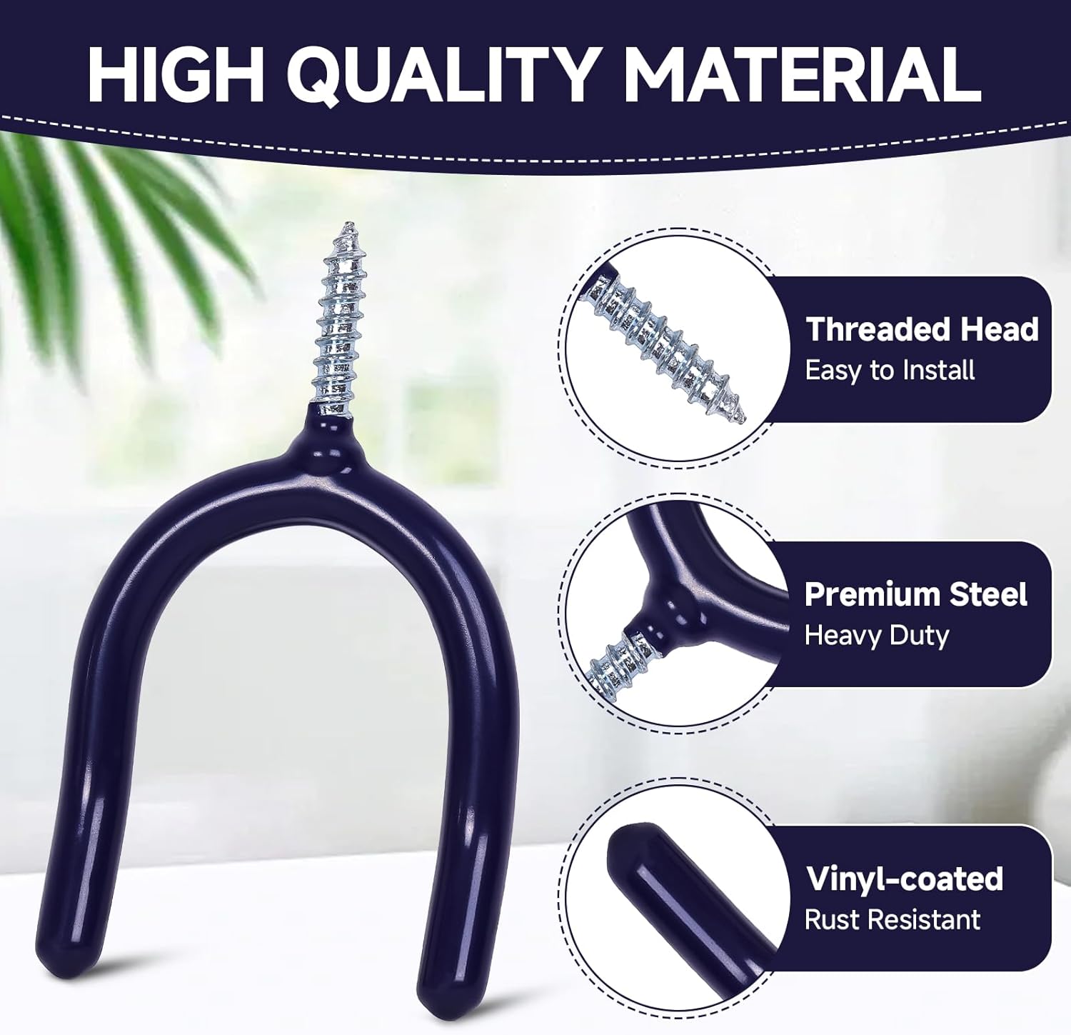 6 Pack Garage Storage System Steel U Hooks with Anti-Slip Coating Home Improvement and Organization Screw in Hooks Easy Wall Mounting Heavy Duty Bike and Ladder (Blue, 6 Pack)