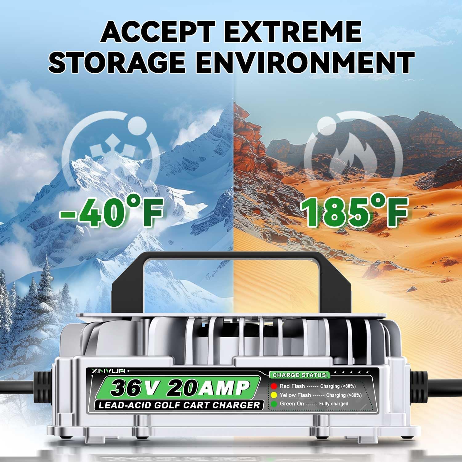 - 【Vortex Heat Dissipation Design】The 36 volt ezgo golf cart battery charger comes with a cooling fan and is designed with a vortex around it, which greatly increases the cooling efficiency and enables it to work stably.