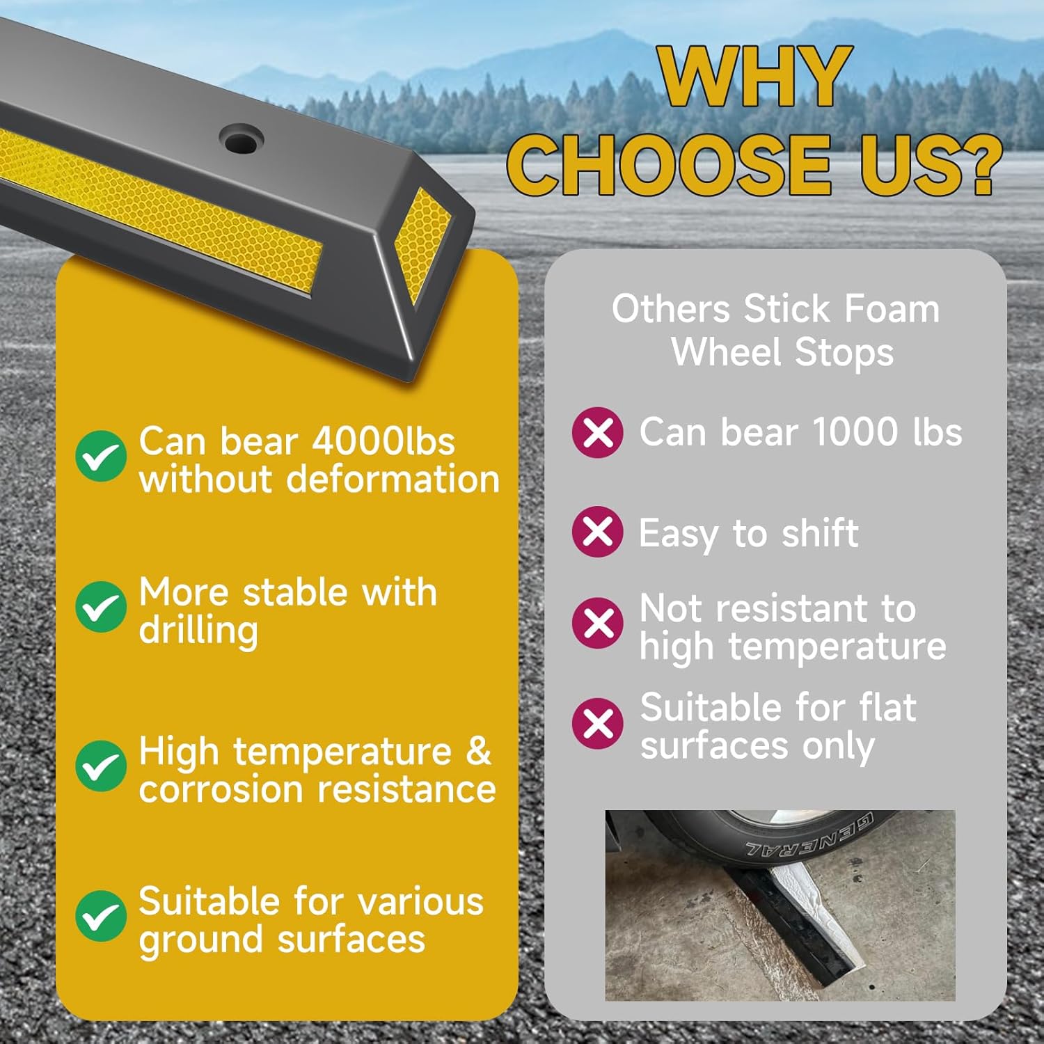 - Versatile Application: This polypropylene parking locator block is perfect for garages, driveways, parking lots, shopping centers, and storage facilities. It helps drivers park precisely every time, protects walls, other vehicles, and property from damage, and maintains order in parking areas.โ