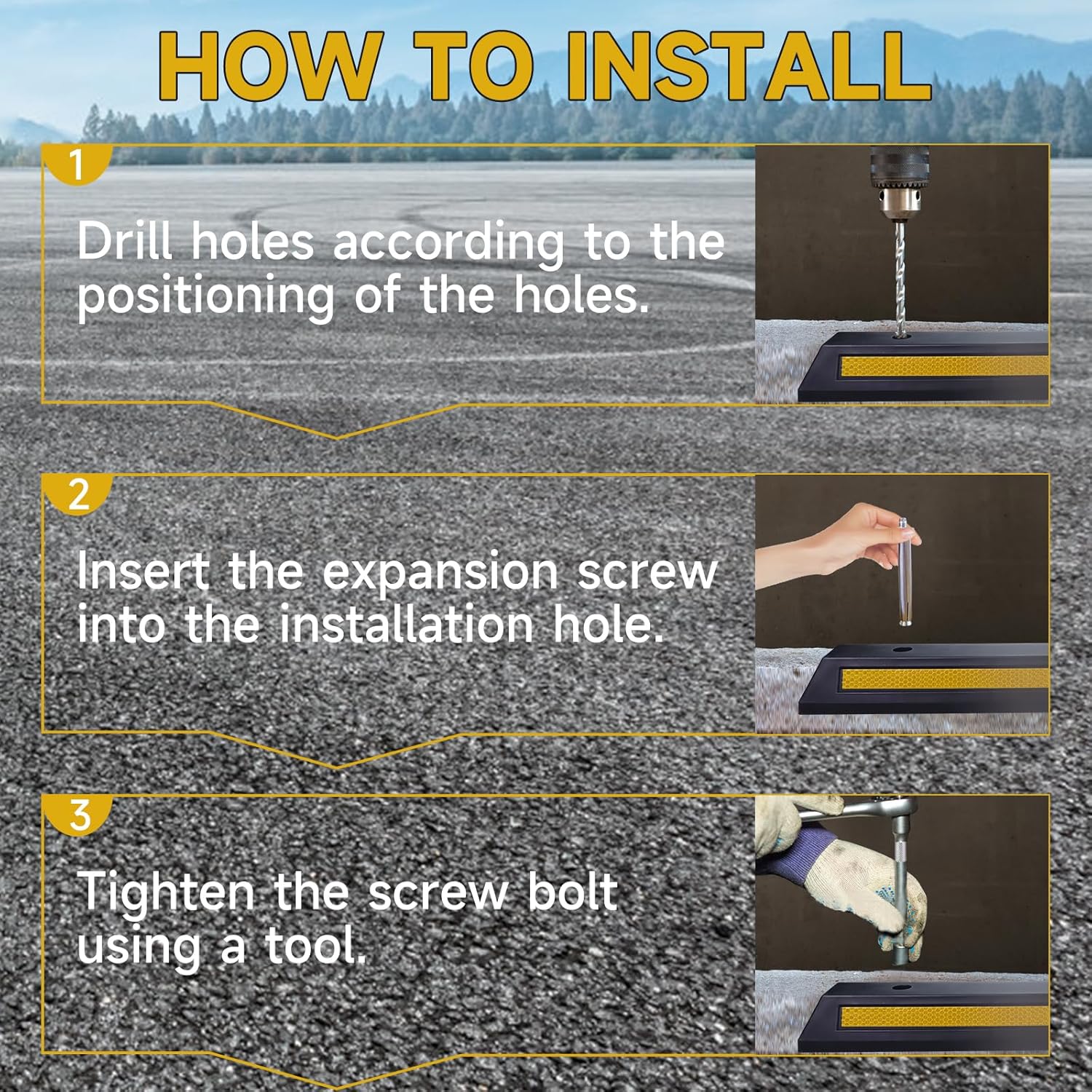 - Easy Installation with Free Accessories: The package includes 4 expansion screws for convenient and secure installation. No heavy equipment is neededโsimply position the block, drill holes, and fix it in place. It can be easily installed on asphalt, concrete, or other hard surfaces, saving you time and effort.