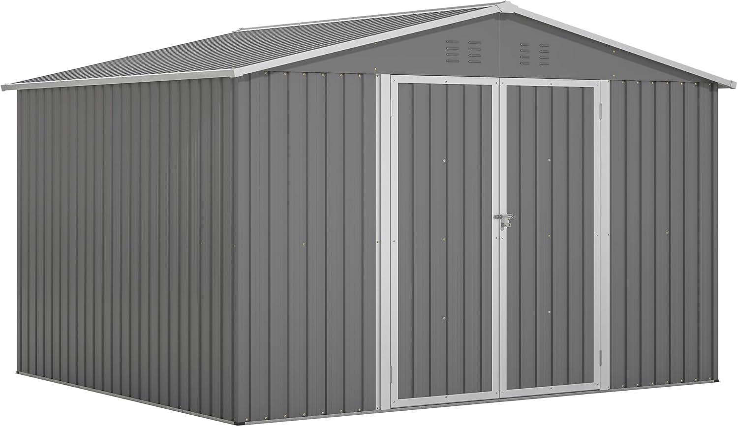 10X8 FT Outdoor Metal Storage Shed with Lockable Door & Floor Frame, Heavy-Duty Garden Tool Shed, Weatherproof Steel Utility Shed for Backyard, Patio, or Lawn Organization