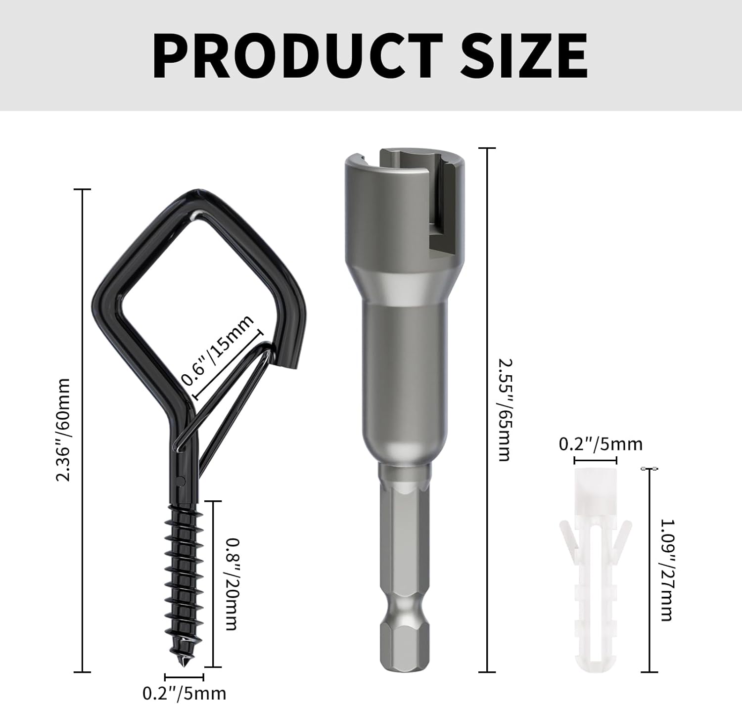 - EASY INSTALLATION: These string light hooks are very easy to intall. You can screw the hooks into the wooden wall directly by hand or wrench. If you want to install it on a concrete wall, you should drill a 0.24''(6mm) hole first, then plug the expansion tube into the hole, and then use a wrench to screw in the hook.