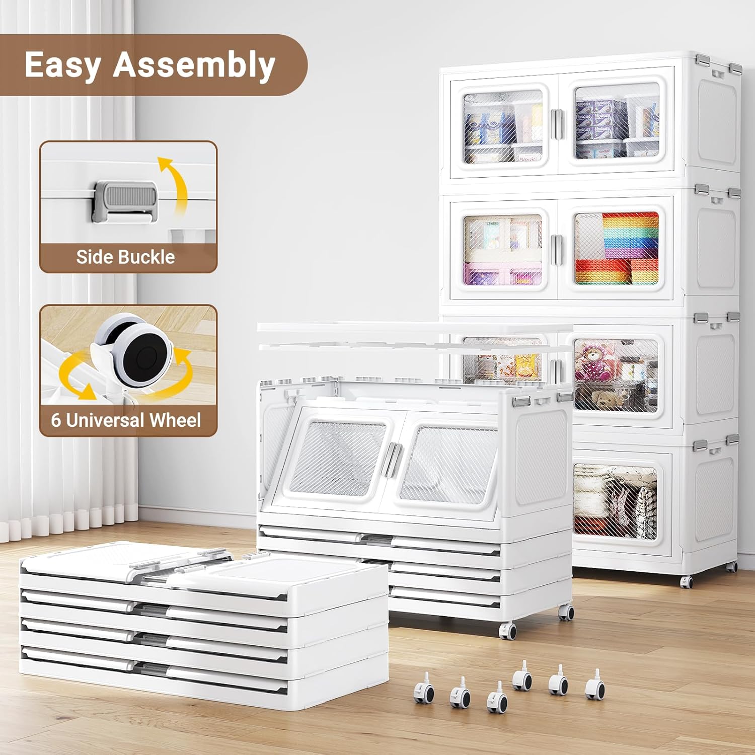 - 【Stackable Design & 360° Rotating Wheels】Our stackable storage bins with wheels design enables secure multi-layer stacking, reinforced by double side 2-buckles and 1 rear buckle for stability. Heavy-duty storage cabinet equipped with 6 TPR-coated 360° swivel wheels for effortless mobility, keeping spaces tidy and organized