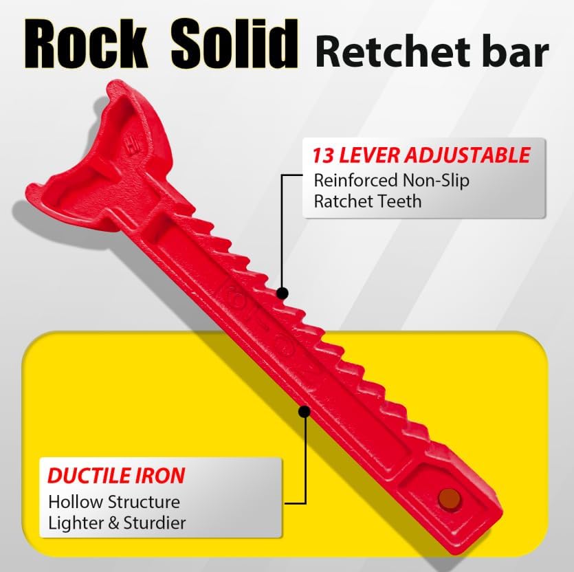 - 【Adjustable Ratchet Bar】: The multi-position ratchet bar is made of high-quality cast ductile iron, thickened and forged in one piece, which is durable and not easy to break. The ratchet bar adopts a serrated design, which can be easily and quickly adjusted to the required height and locked in place, allowing DYI enthusiasts or mechanics to maintain or repair cars safely and happily