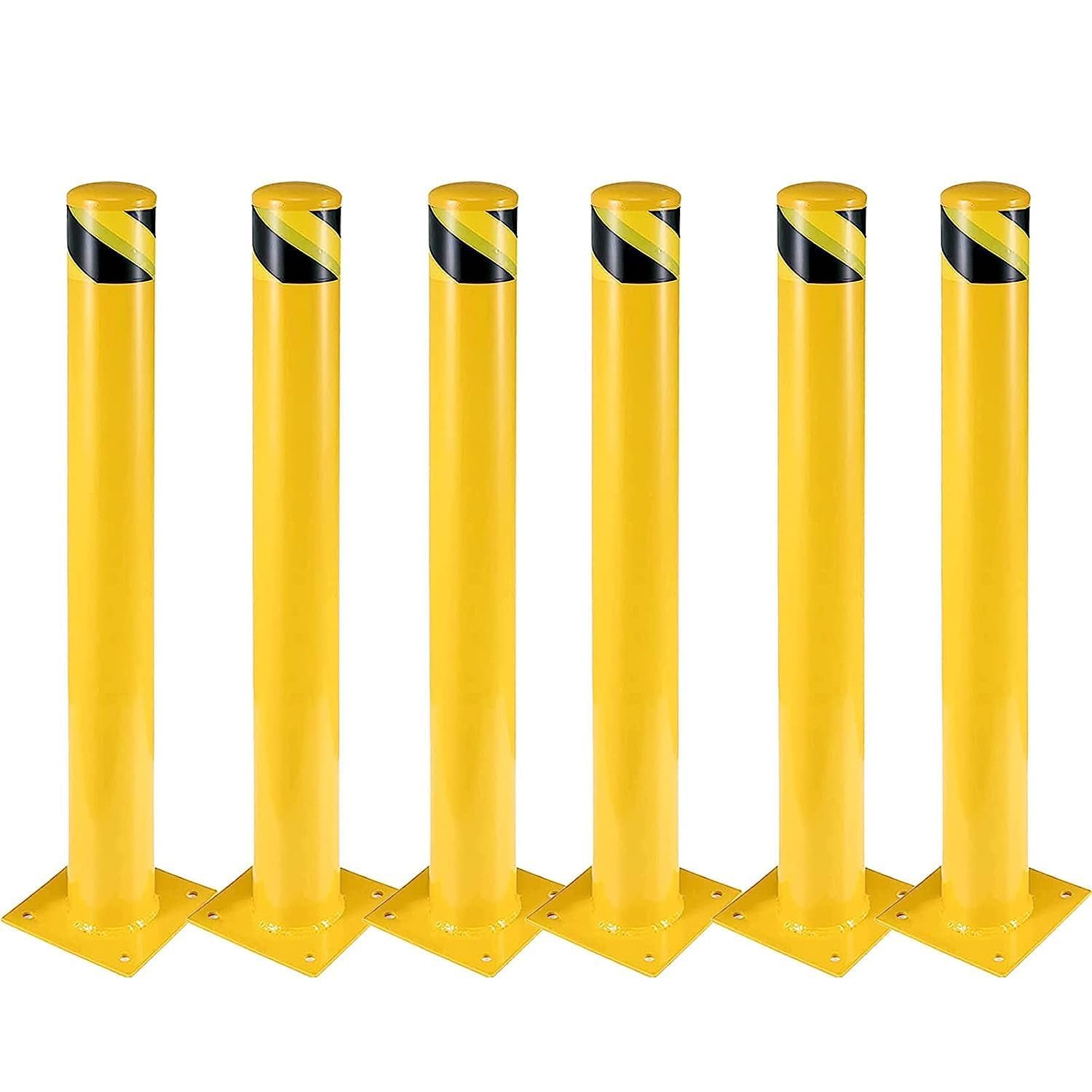 6Pcs Heavy Duty Safety Bollards, 48" Height, 4.5" Diameter Steel Pipe Bollard Post with 24 Anchor Bolts, High-Visibility Yellow Parking Bollard for Traffic Control, Warehouses, & Pedestrian Safety