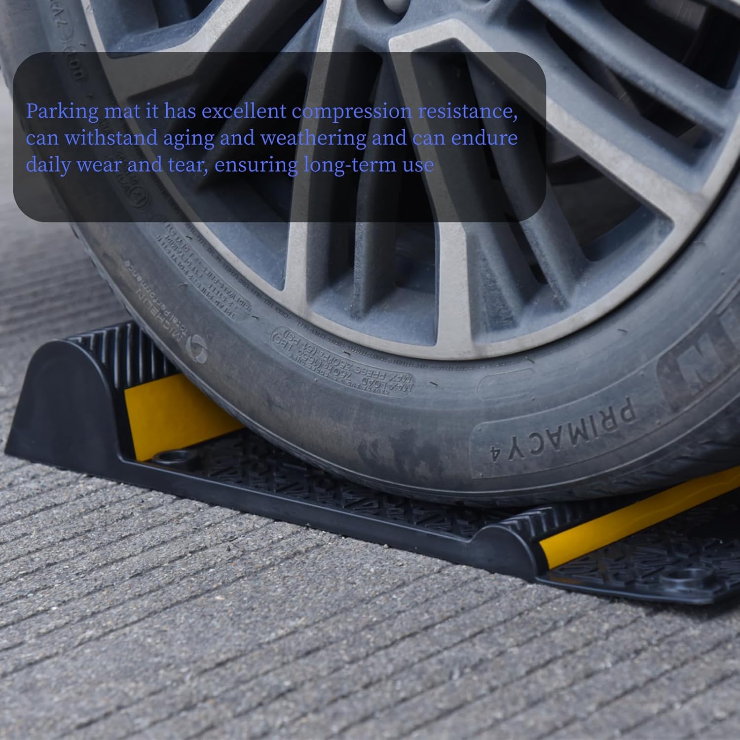 - Convenient Parking: This garage parking stops adopts a unique anti-slip design to prevent sliding or skidding during parking. Each mat is equipped with high-visibility yellow reflective tape that serves as the perfect guide for simple parking. The tape make the garage parking aid mat easily noticeable, so parking is both easy and efficient.