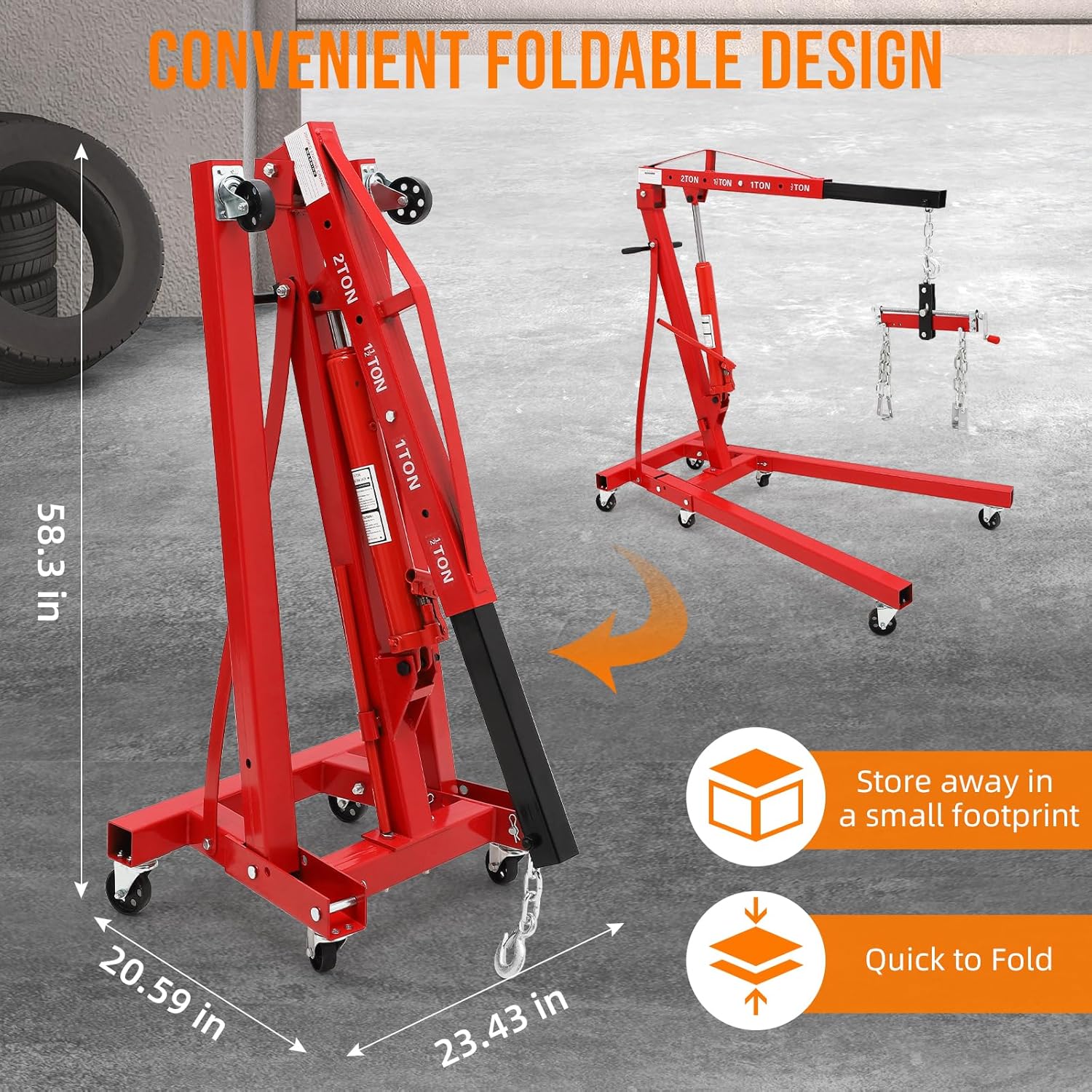 - 【FOLDING ENGINE LIFT】: After use, Fold up the engine lift and store it anywhere. It won't take up much space and will keep your garage or workshop tidy. Increase the efficiency of your repairs with our innovative 2-in-1 engine lifts!