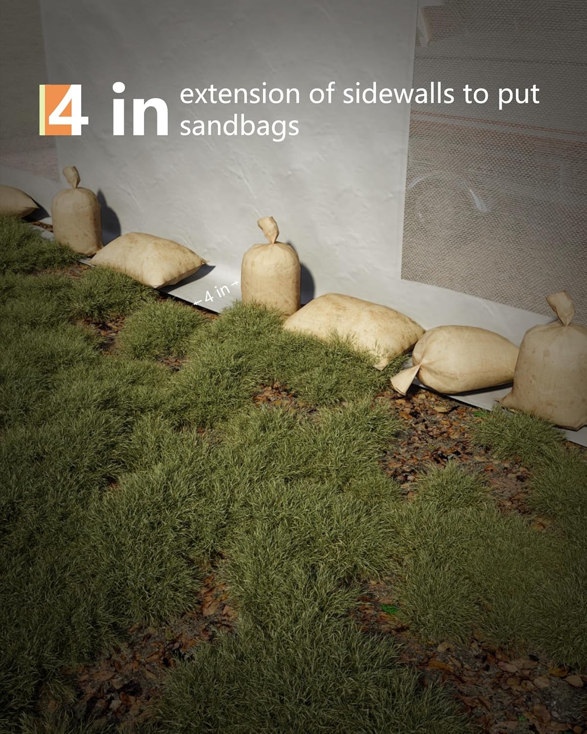 • [Warning] Max wind-resistant level Beaufort 7; Carport must be placed on flat ground and must be secured with the ground pegs, guylines, and anchors; When used in windy areas, please add more counterweight such as concrete, sandbags, or steel rope; When used in the winter, must clean the snow(no more than 4 inch) on the roof in case collapse