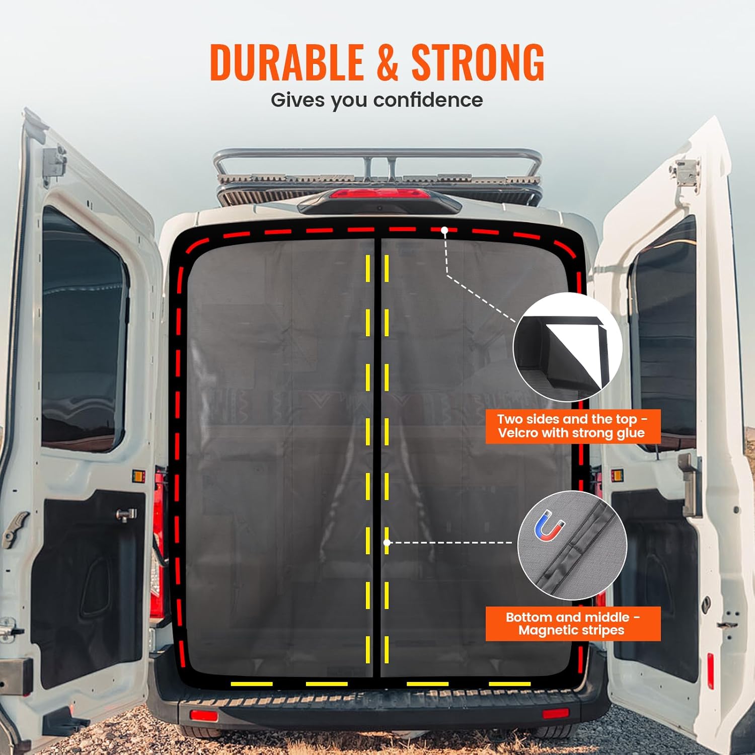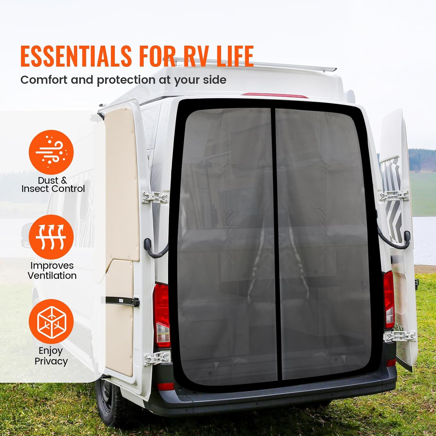 - 【Universal Size】Measuring 65''H x 65''W, this van bug screen fits perfectly on most standard roof vans, making it an ideal choice for your Mercedes Sprinter, Ford Transit, and RAM Promaster rear door. Fits most campervans—simply measure your door opening to ensure a perfect, snug fit.