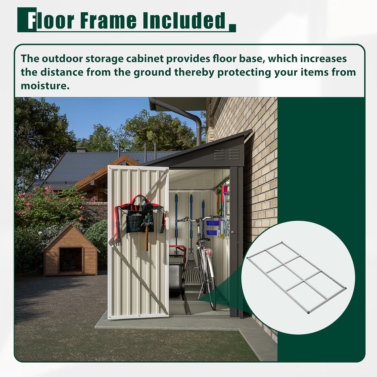 - Sloping Roof & Lockable Door: This outdoor metal storage shed features a sloping roof, preventing water accumulation. The garden shed is equipped with a lockable door to enhance security; Choose a suitable lock and effectively prevent theft or unauthorized access to your tools and belongings. Due to its lean-to design, our garden shed can use other structures as additional support
