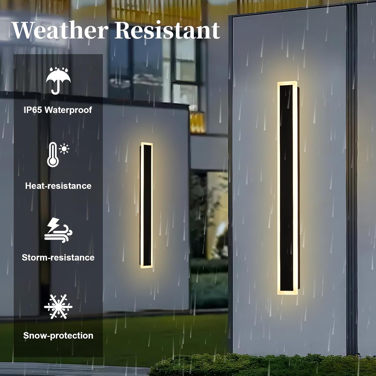 - 【Multi Functional Scenarios】:This modern outdoor wall sconce linear lights and fashionable design creates a low-key charm, perfectly complementing any external space. Can be used in various environments to create a variety of atmospheres, including House, garage, porch, front door, courtyard, Outside swimming pool, shop, restaurant and so on.