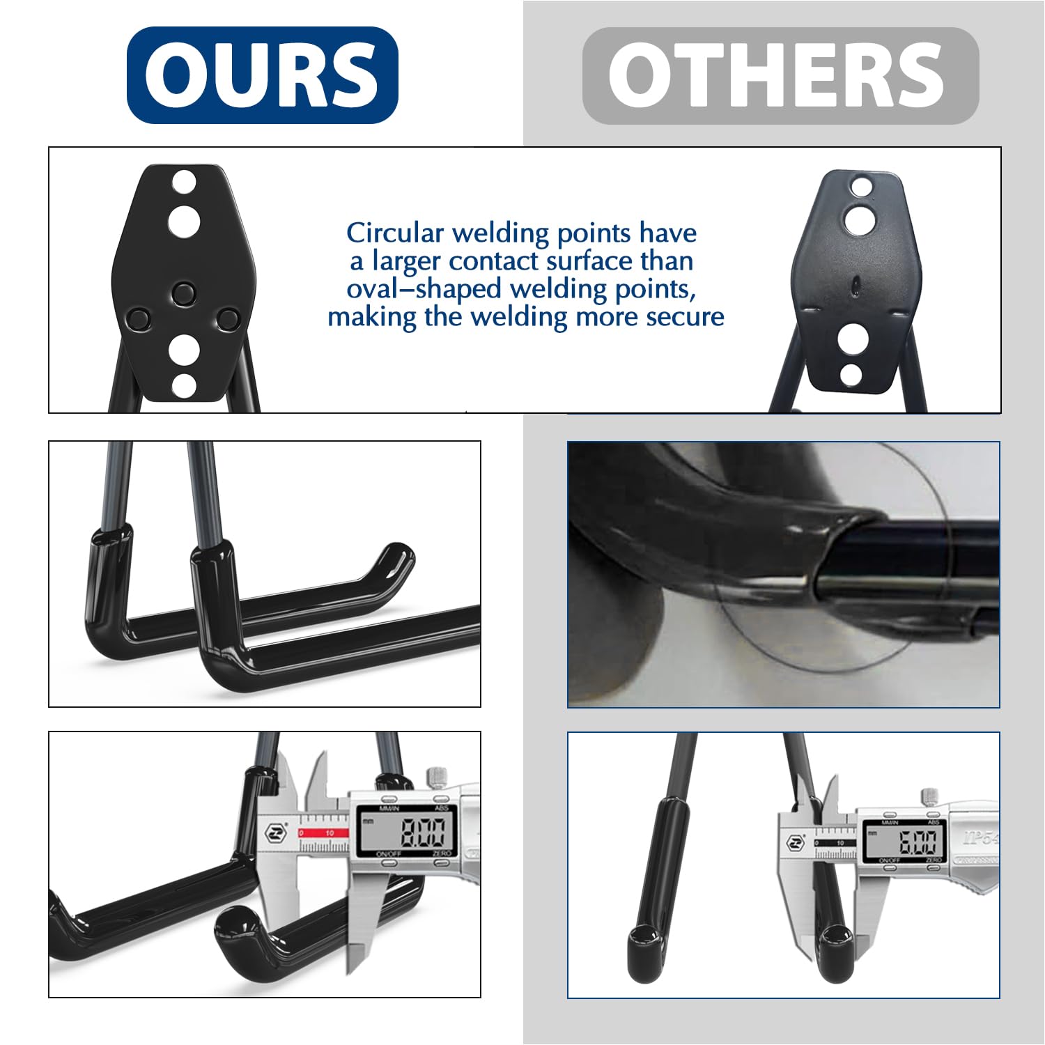 - Upgrade Design-Triangle 3 Welding Dot Support: Different from other similar garage hooks with only 2 welding spots, we designed 3 welding dot to connect the garage tool organizer with the base, offering higher security and no worrying about the rear steel panel splitting or falling off, a perfect choice of wall hooks for hanging heavy duty