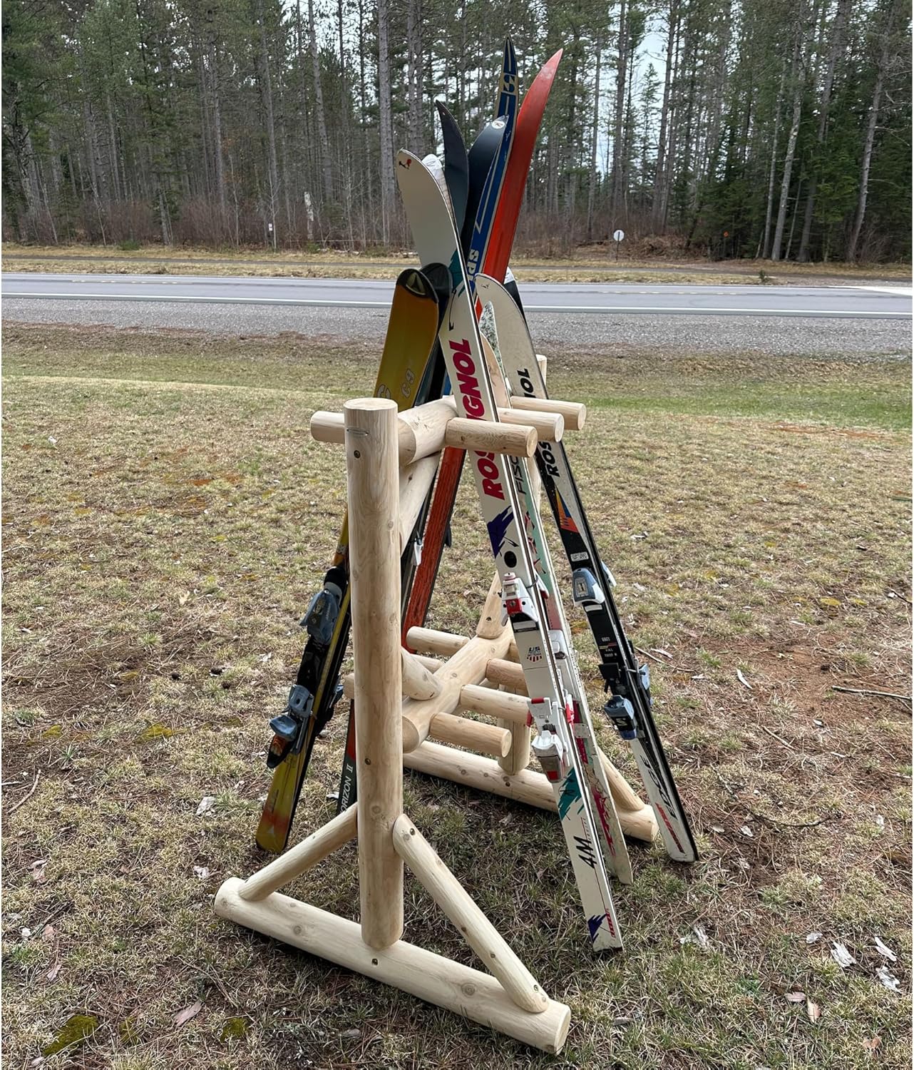 - 100% NORTHERN WHITE CEDAR CONSTRUCTION: Made from solid Northern White Cedar, this durable wood storage rack blends naturally with outdoor environments and holds up well in changing weather. It's suitable for both ski and snowboard storage, whether indoors or outdoors. The natural cedar look enhances any setting, while offering strong performance as a ski rack for garage, cabin, or home garage sports equipment organizer.