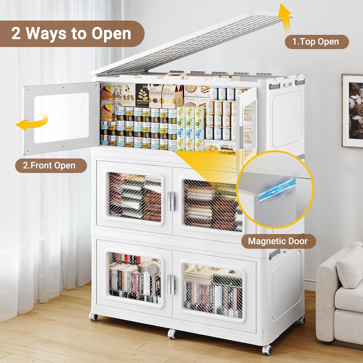 - 【Dual Opening Doors & Easy Access】Broview extra large storage bins feature front double magnetic doors with easy-pull handles for daily quick access and a top lid for direct retrieval of large items like blankets. The huge storage box capacity equivalent to multiple small drawers, they enable organized, multi-level storage—perfect for closets, bedrooms, or nurseries.