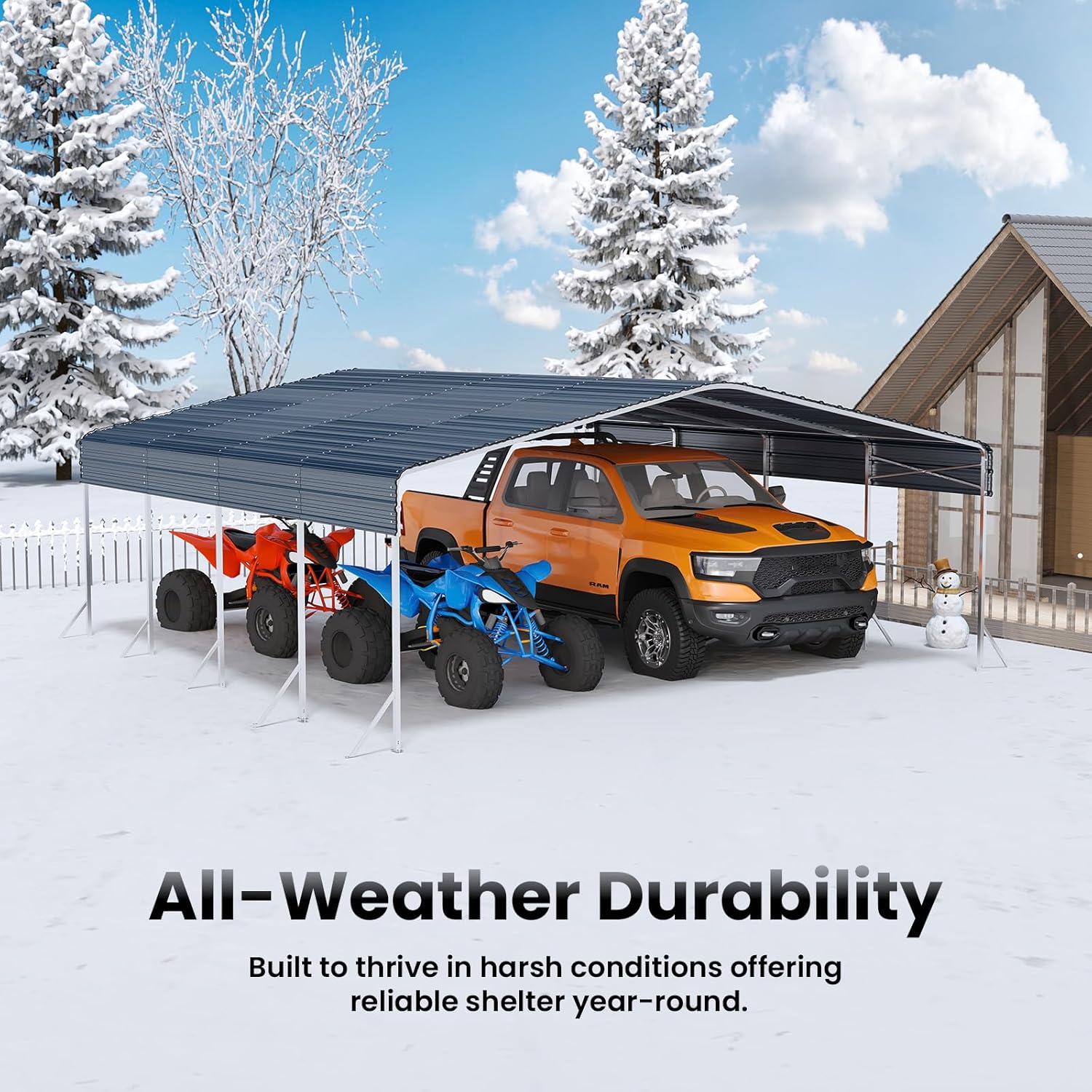 - All-Weather Protection: Sturdy 2‘’ x 2‘’ frame and 27-gauge sheet metal roof provide reliable protection for your vehicle and outdoor equipment from rain, snow, and sun all year round