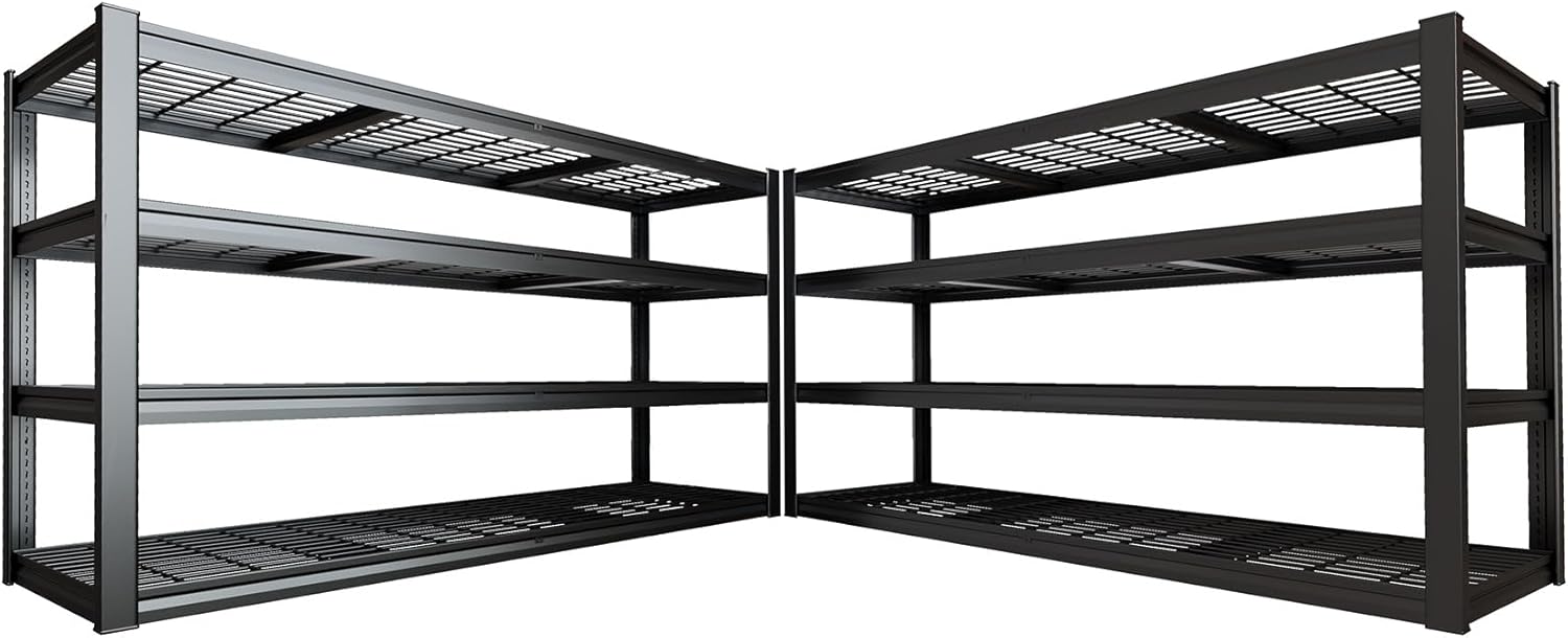 77" W Storage Shelves Heavy Duty Garage Shelving 4 Tier Metal Shelving Unit, Adjustable Shelves, 5000LBS Steel Industrial Shelving for Basement Warehouse Commercial, 77" W*24" D*72”H, 2 Pack