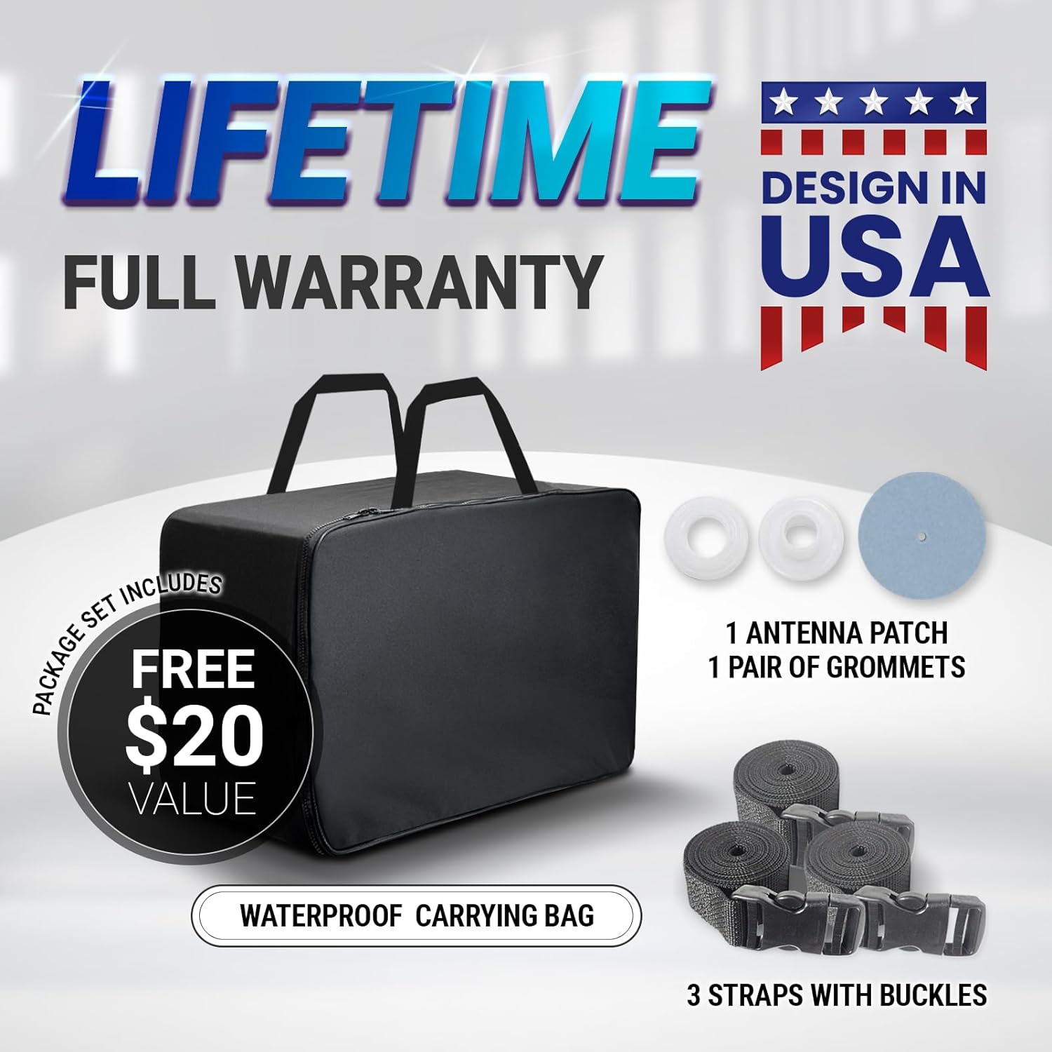 - 100% SATISFACTION GUARANTEE & PREMIUM ACCESSORIES: We offer a 100% satisfaction guarantee and comprehensive warranty, you can purchase with confidence. Each car cover includes premium accessories such as antenna patches, grommets, wind straps, and a compact storage bag for easy, space-saving storage. We are committed to providing high-quality protection and convenience for your vehicle.