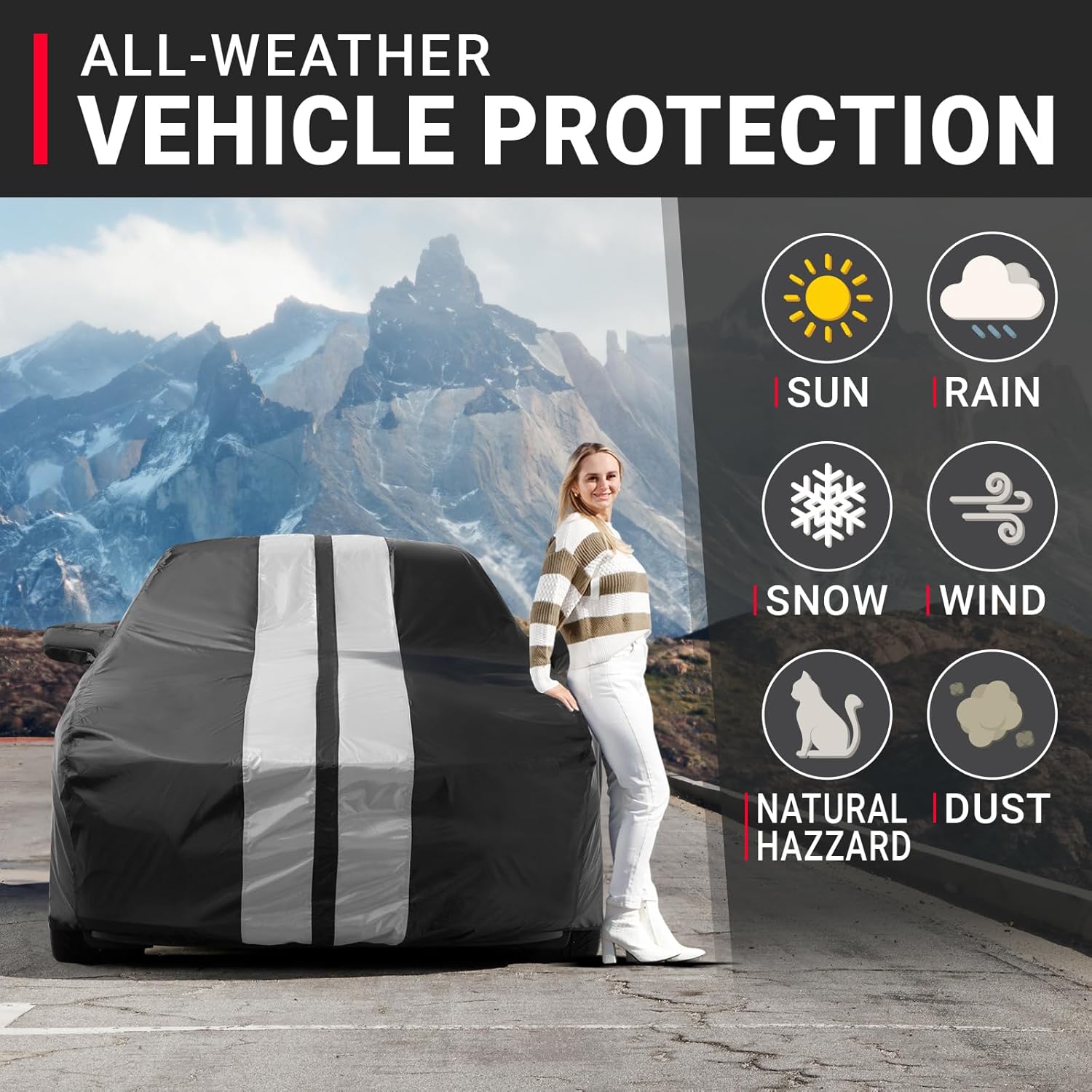 - HEAVY DUTY & HIGH-QUALITY MATERIAL: Crafted from premium, durable materials, this car cover is built to last. Itβs engineered to withstand even the toughest outdoor conditions, offering superior protection against scratches, dirt, UV rays, and other environmental hazards. Designed for long-term use, the high-quality construction resists wear and tear, ensuring your vehicle remains protected year after year.