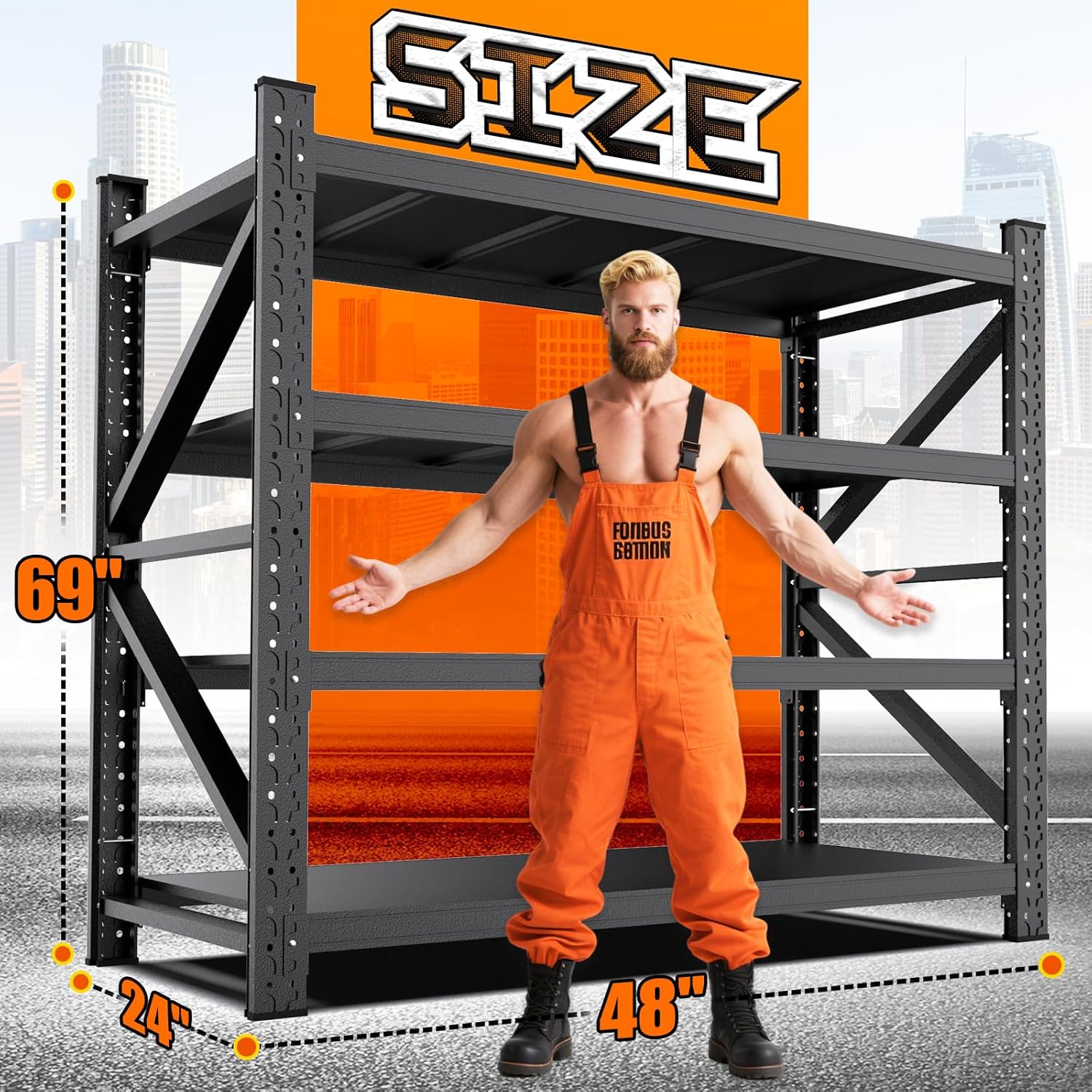 - Wider Shelves, Designed for Large Items: Perfectly fits any space! Measuring 69''H*48''W*24'', this shelving is specifically engineered for storing large items, effortlessly handling garages, basements, or warehouses. Transform your garage shelving from mere storage tools into space-optimizing solutions!