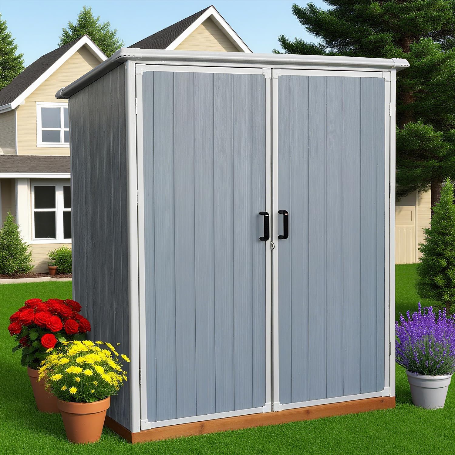 - 【Ample Storage Capacity】 Designed with a spacious 5x3 FT interior, this storage shed provides generous room to store garden tools, patio furniture accessories, bicycles, and various outdoor essentials. Keep your outdoor space organized and clutter-free with ease